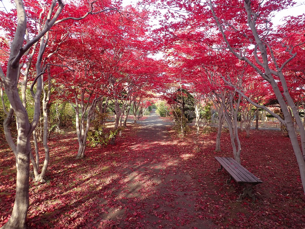 紅葉並木のノムラモミジのトンネルも赤く色づき、見頃を迎えています。