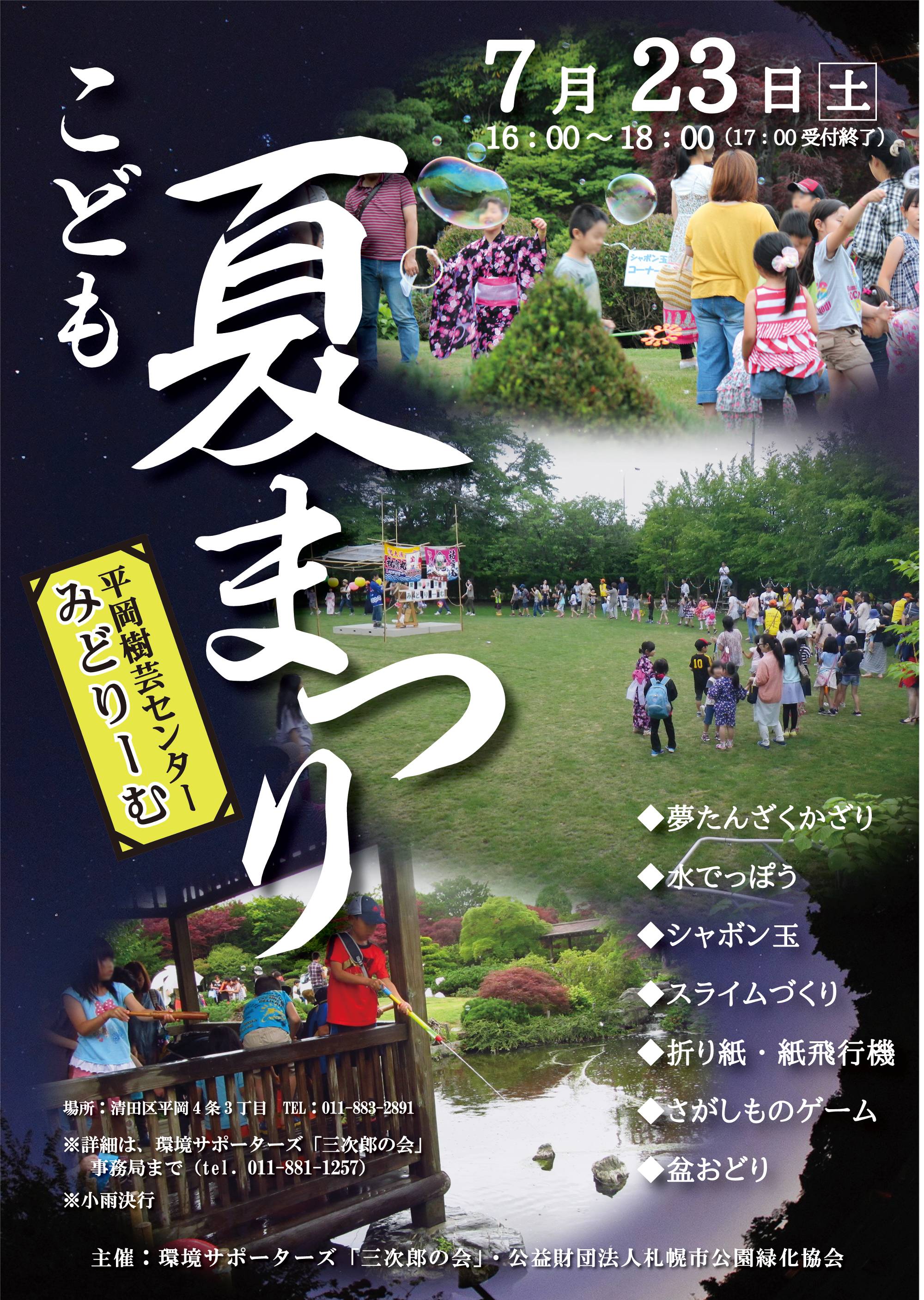 今年も夢たんざくかざり、みずでっぽう、折り紙・紙飛行機などなど、たくさんの楽しい遊びを用意しています!最後はみんなで盆踊り。お友達を誘って、平岡樹芸センター「みどりーむ」に遊びに来ませんか?