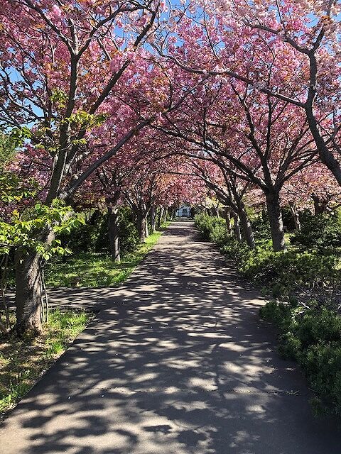 この暖かさから、サクラ並木の八重桜が満開となっています。