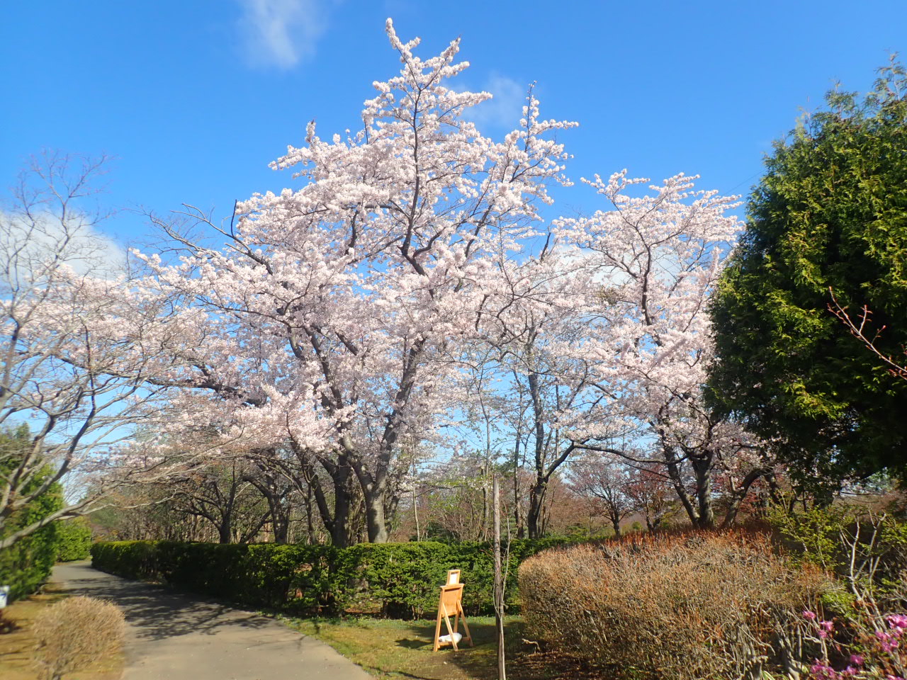 風は少し冷たいですが、園内ではエゾヤマザクラは散り始めていますが