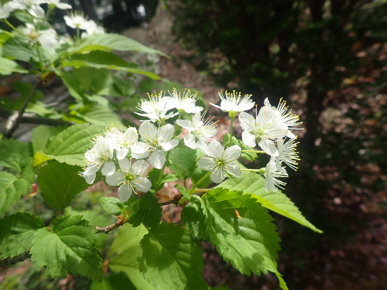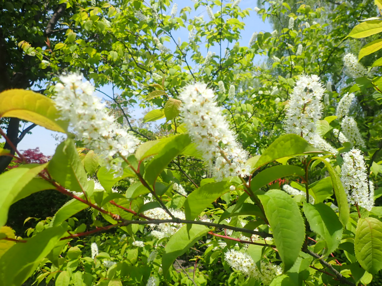 園内では、ウワミズザクラとミヤマザクラが見頃になっています。