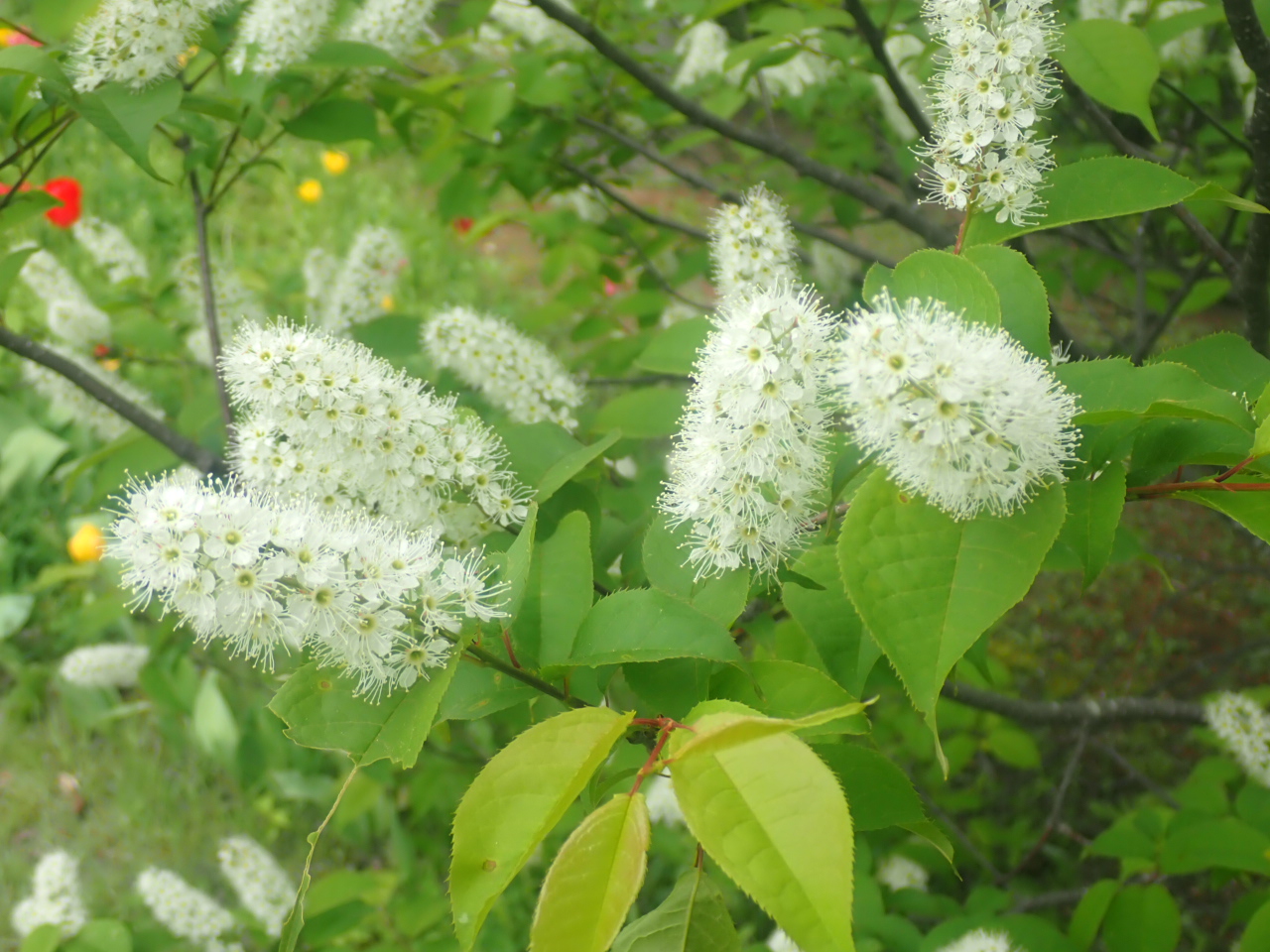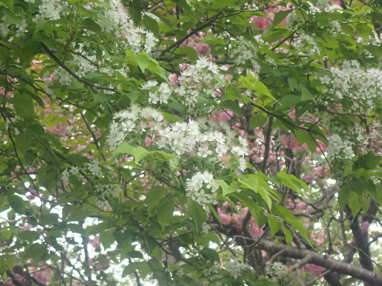 園内では、ウワミズザクラやミヤマザクラが見頃です。