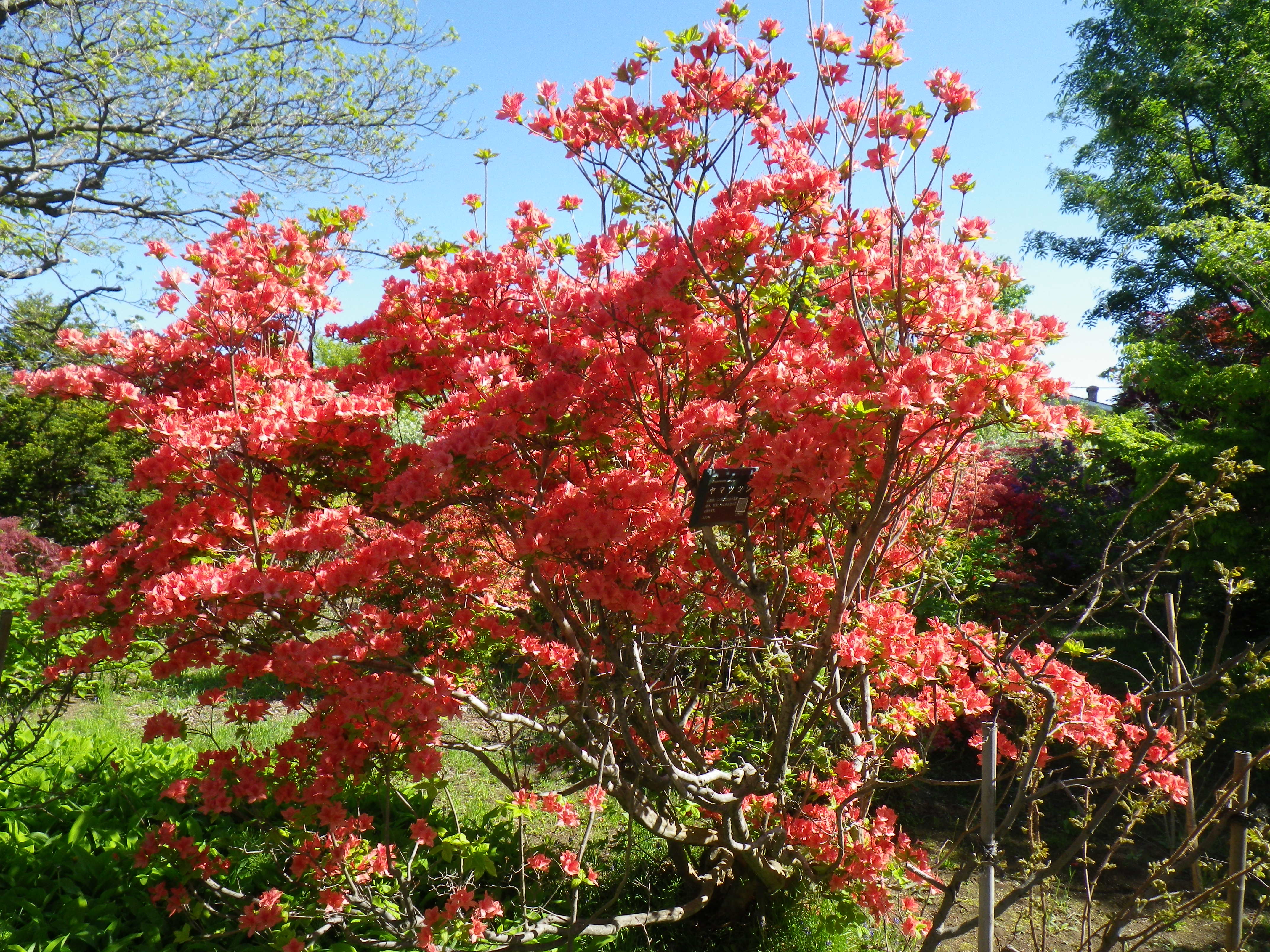 まずは山ツツジです。オレンジに近い赤い花が非常にきれいに咲いています。
