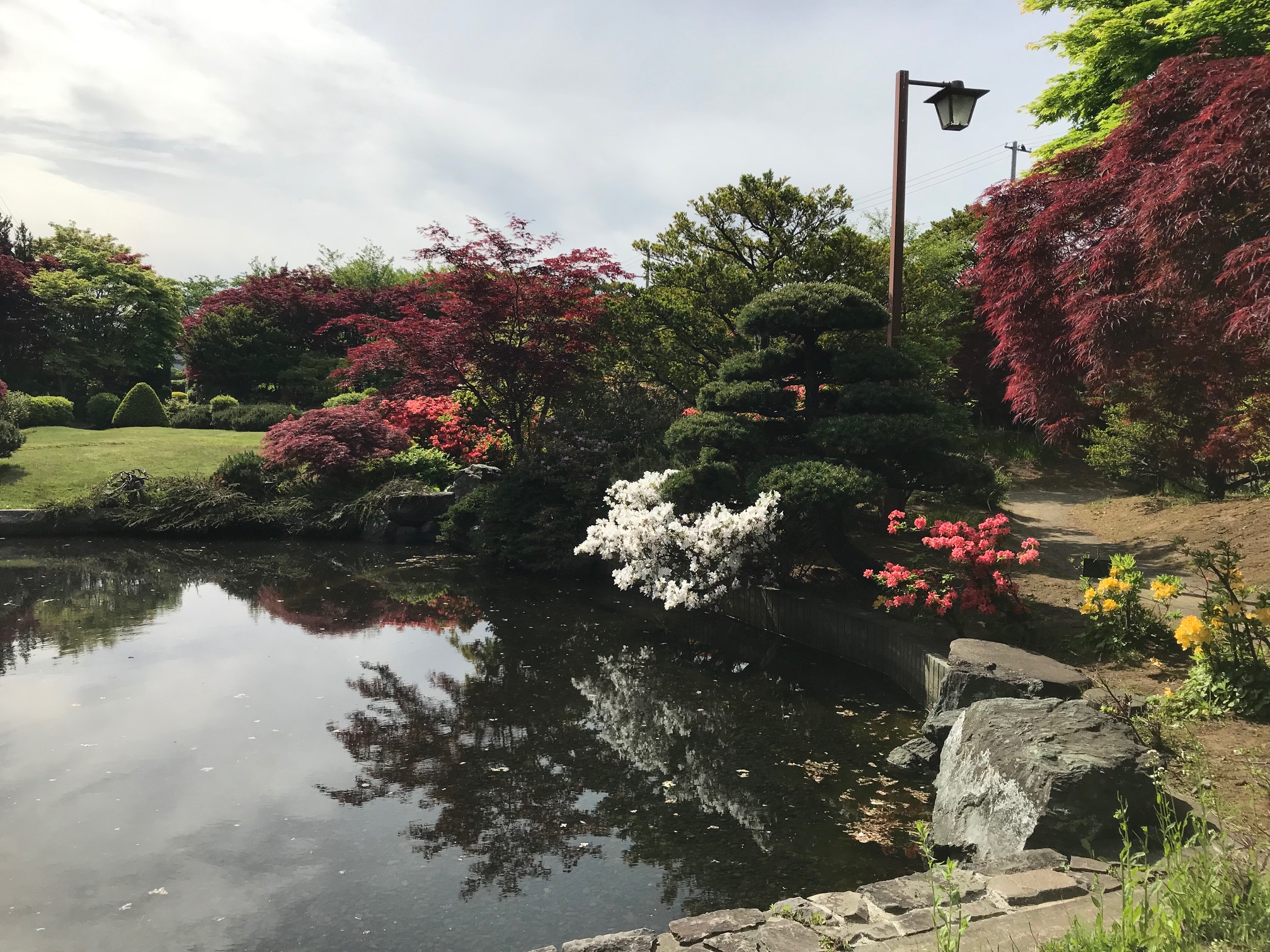 日本庭園はツツジやマツに囲われ、大変趣があります。
