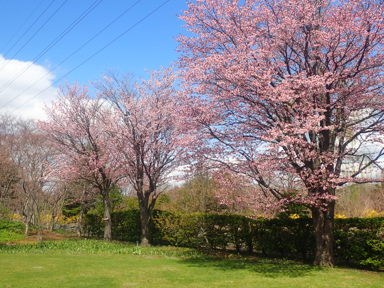 園内では、ミネザクラやエゾヤマザクラが見頃を迎えています。