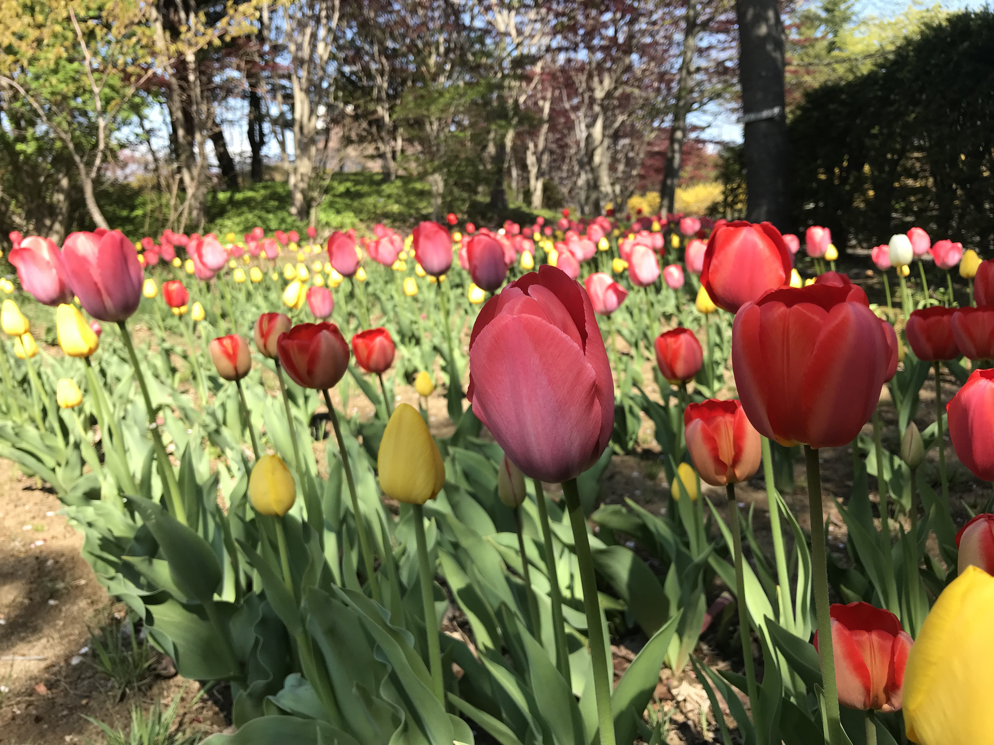 最後に、芝生広場のチューリップ畑も見頃を迎えています。