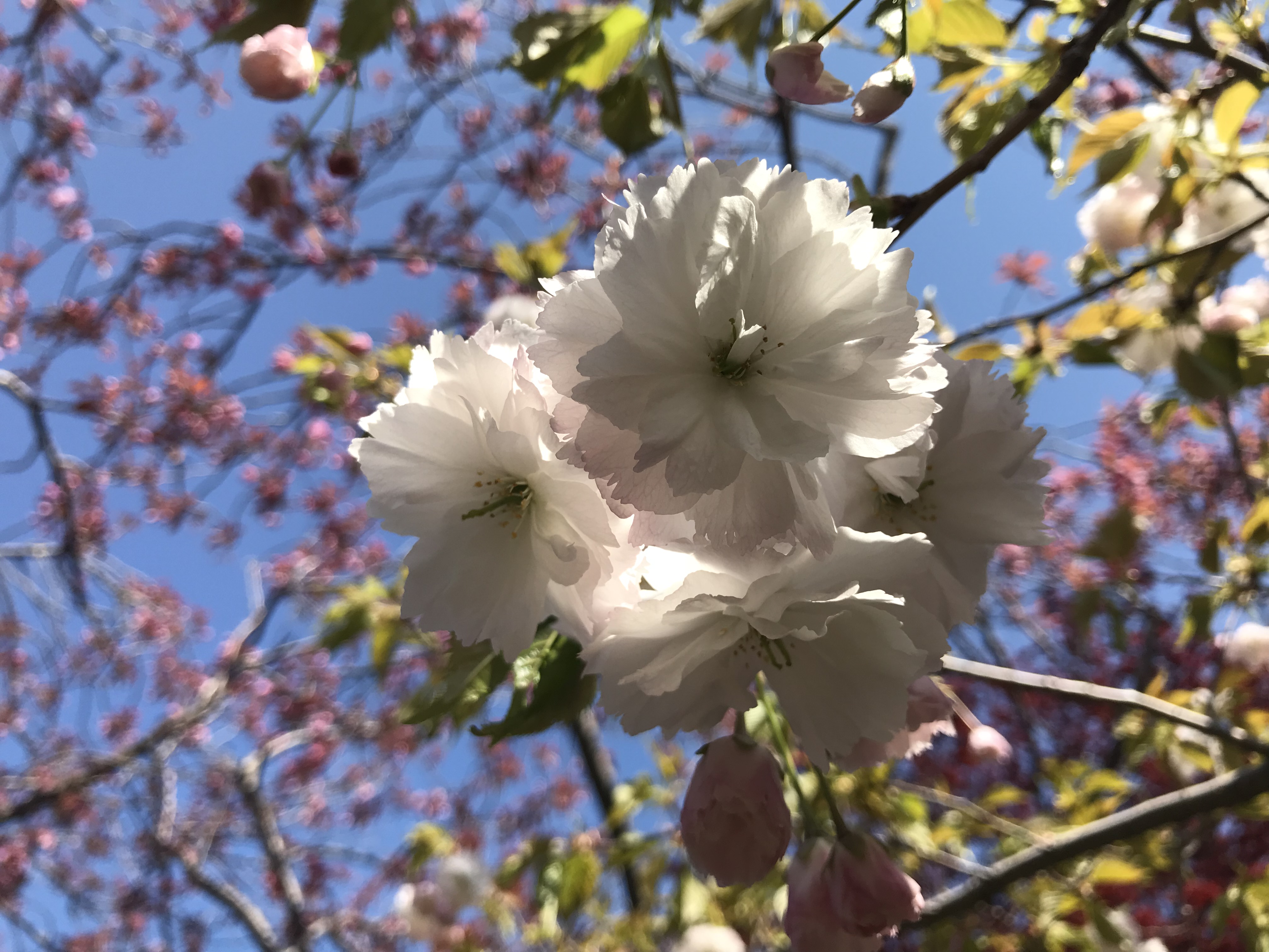 当園ではヤエザクラが開花し、様々な種類のサクラが見られる時期を迎えています。