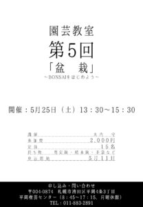 ※当園芸教室は屋内実習です。汚れてもよい服装でご参加ください。