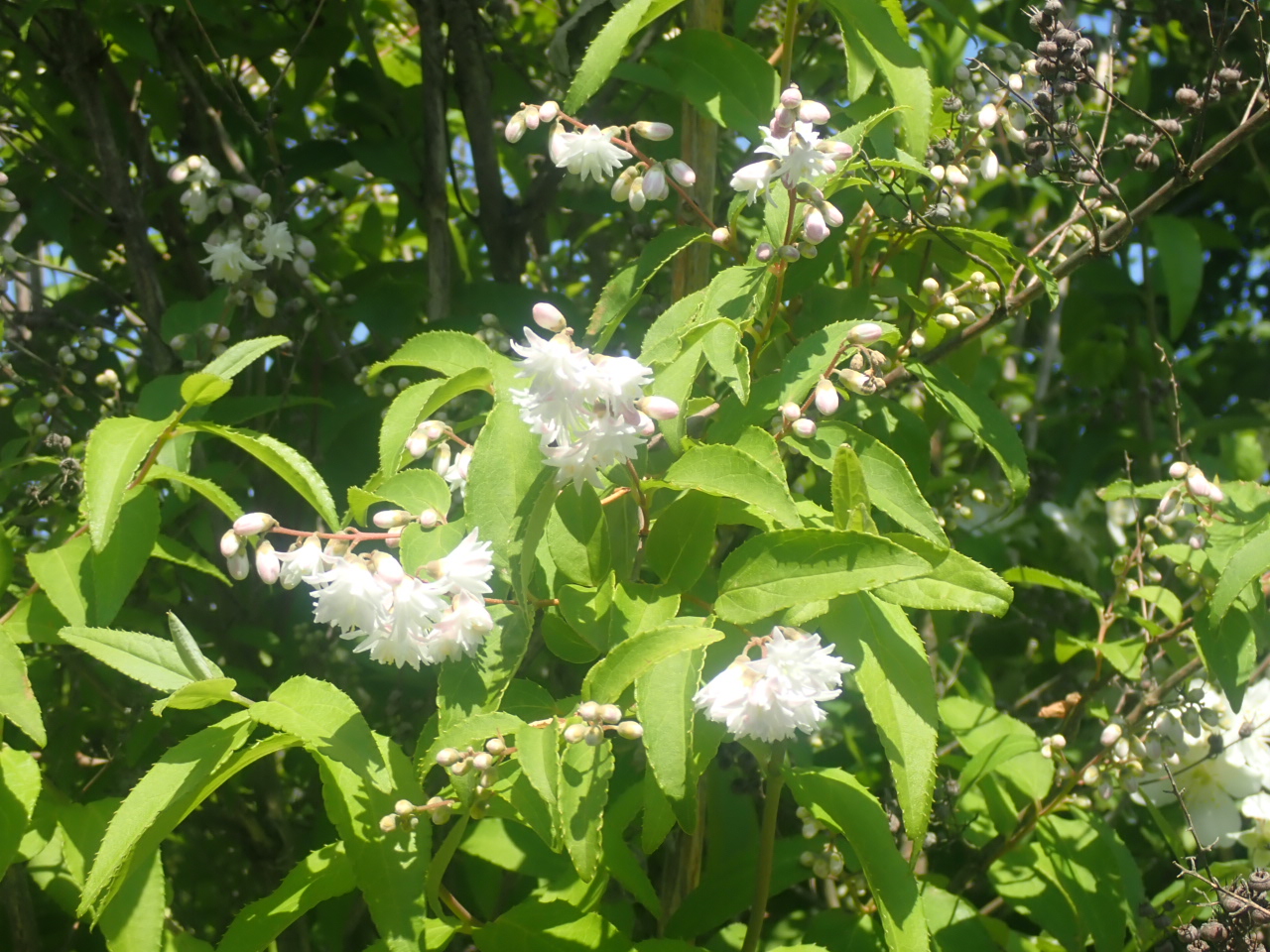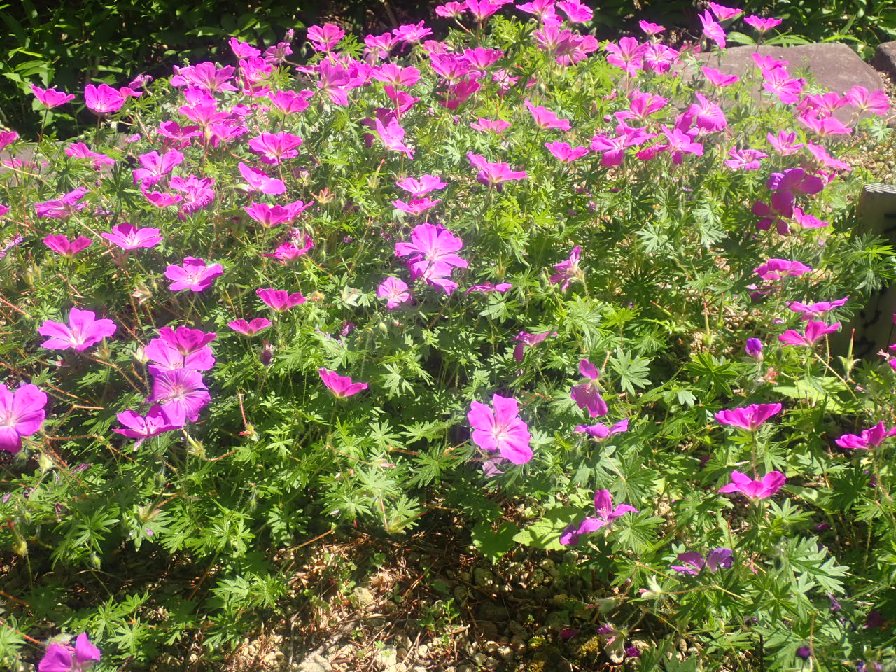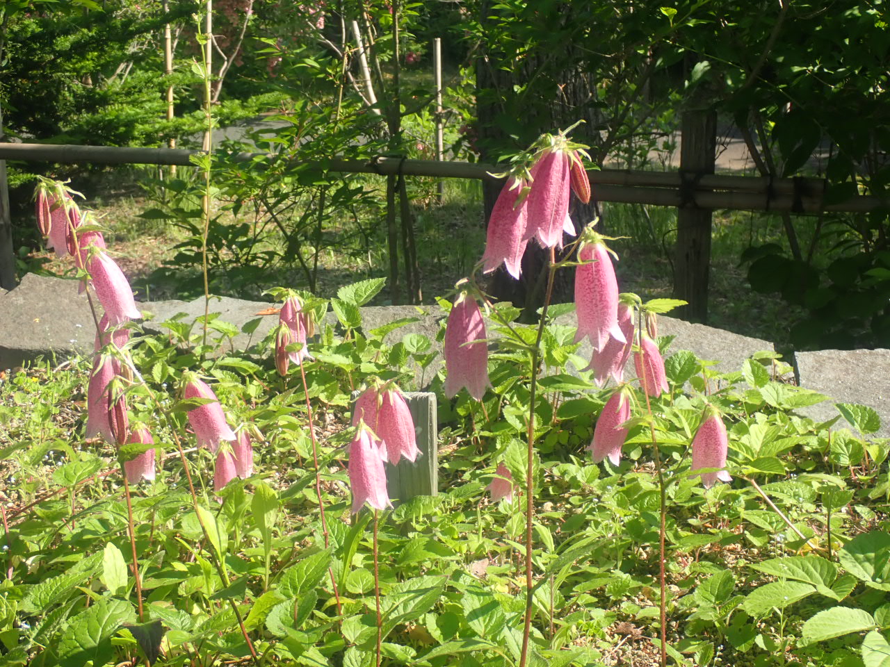 ウォールガーデンでは、アケボノフクロウソウやヤマホタルブクロが咲いています。