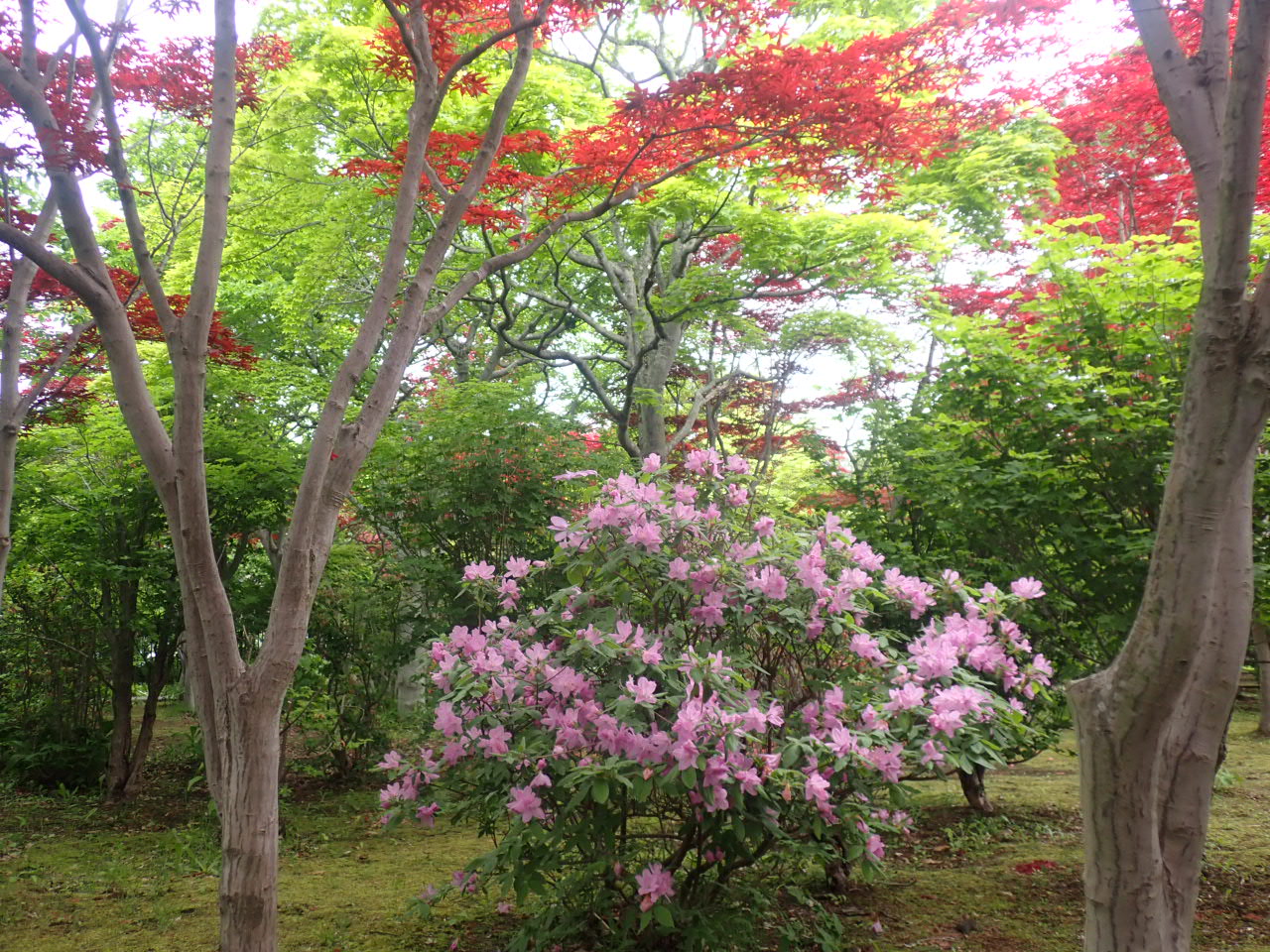 園内では、チョウセンヤマツツジが紫色に綺麗に咲いています。
