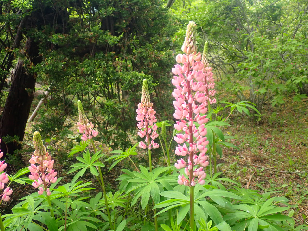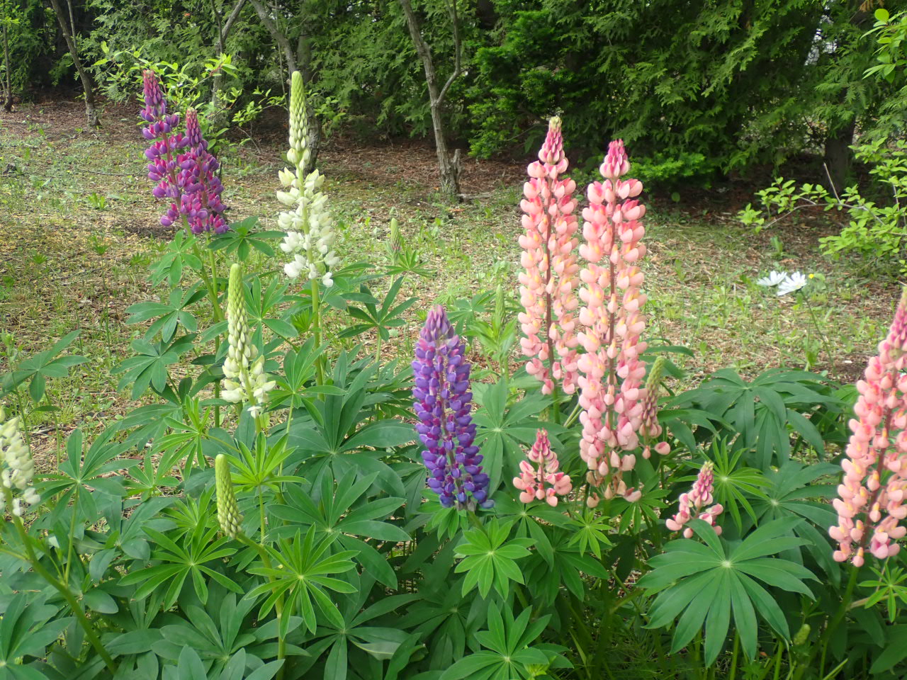 ピンクや紫のルピナスが咲いています。