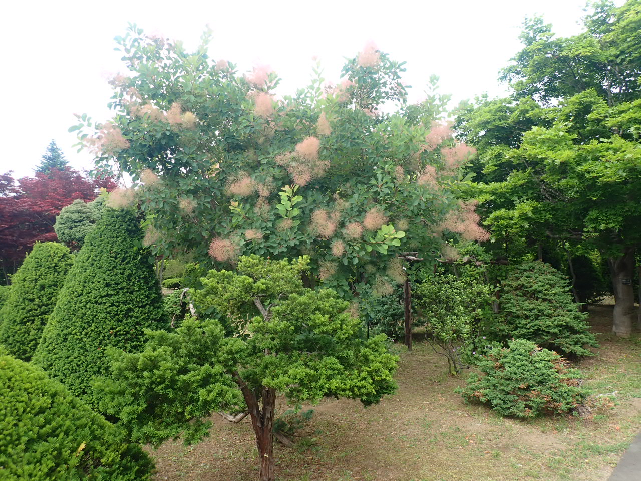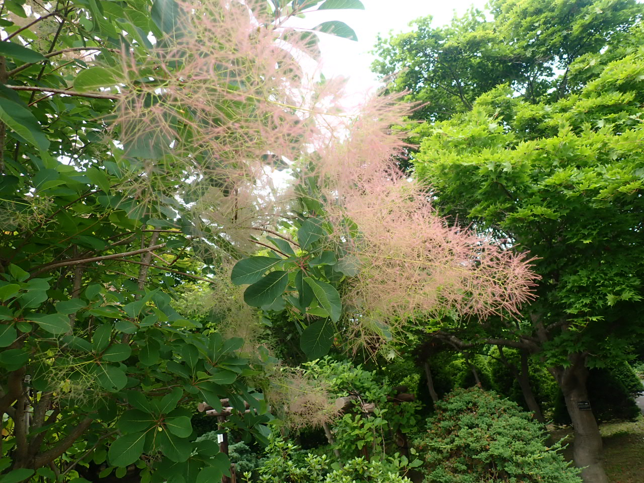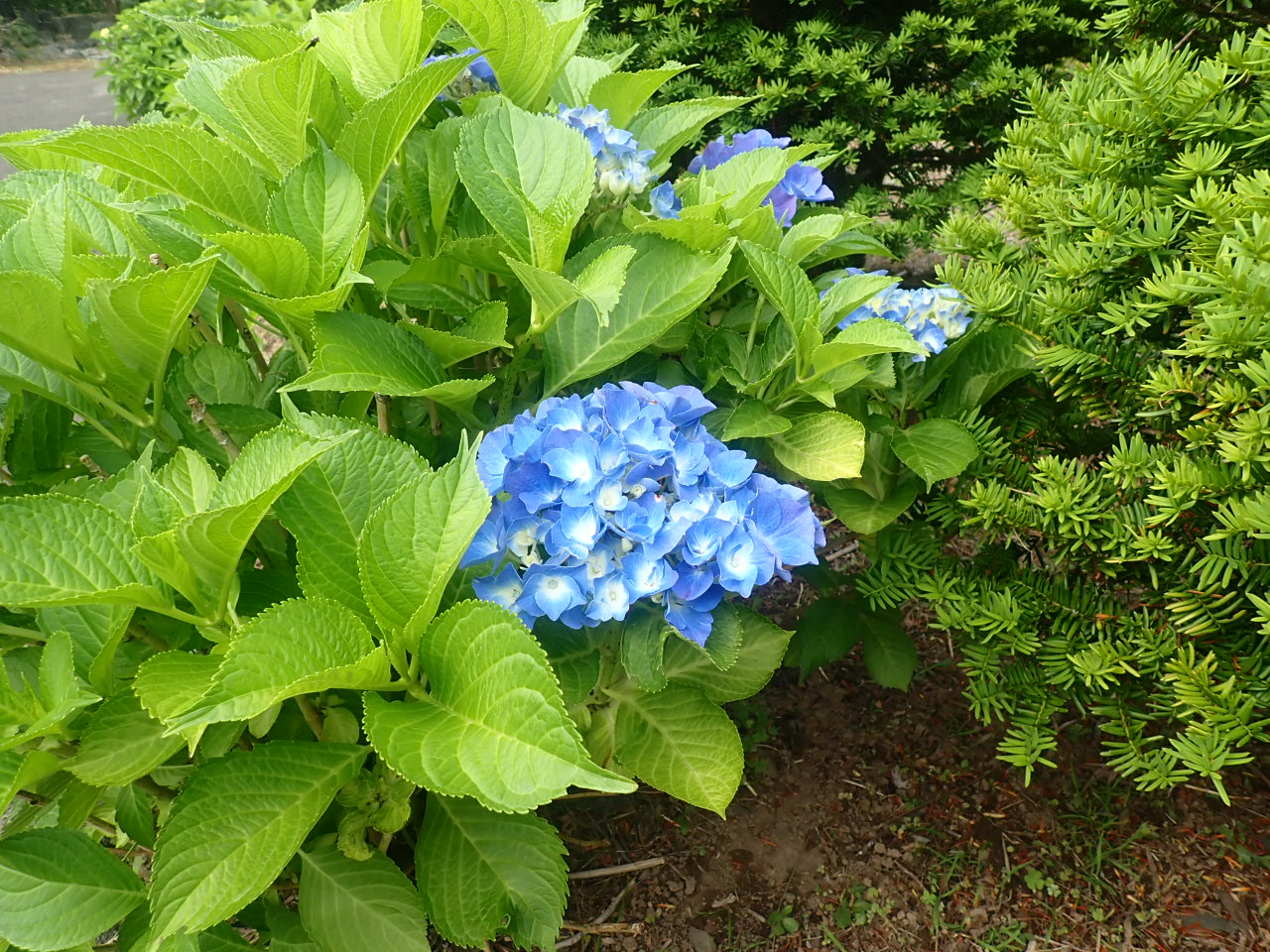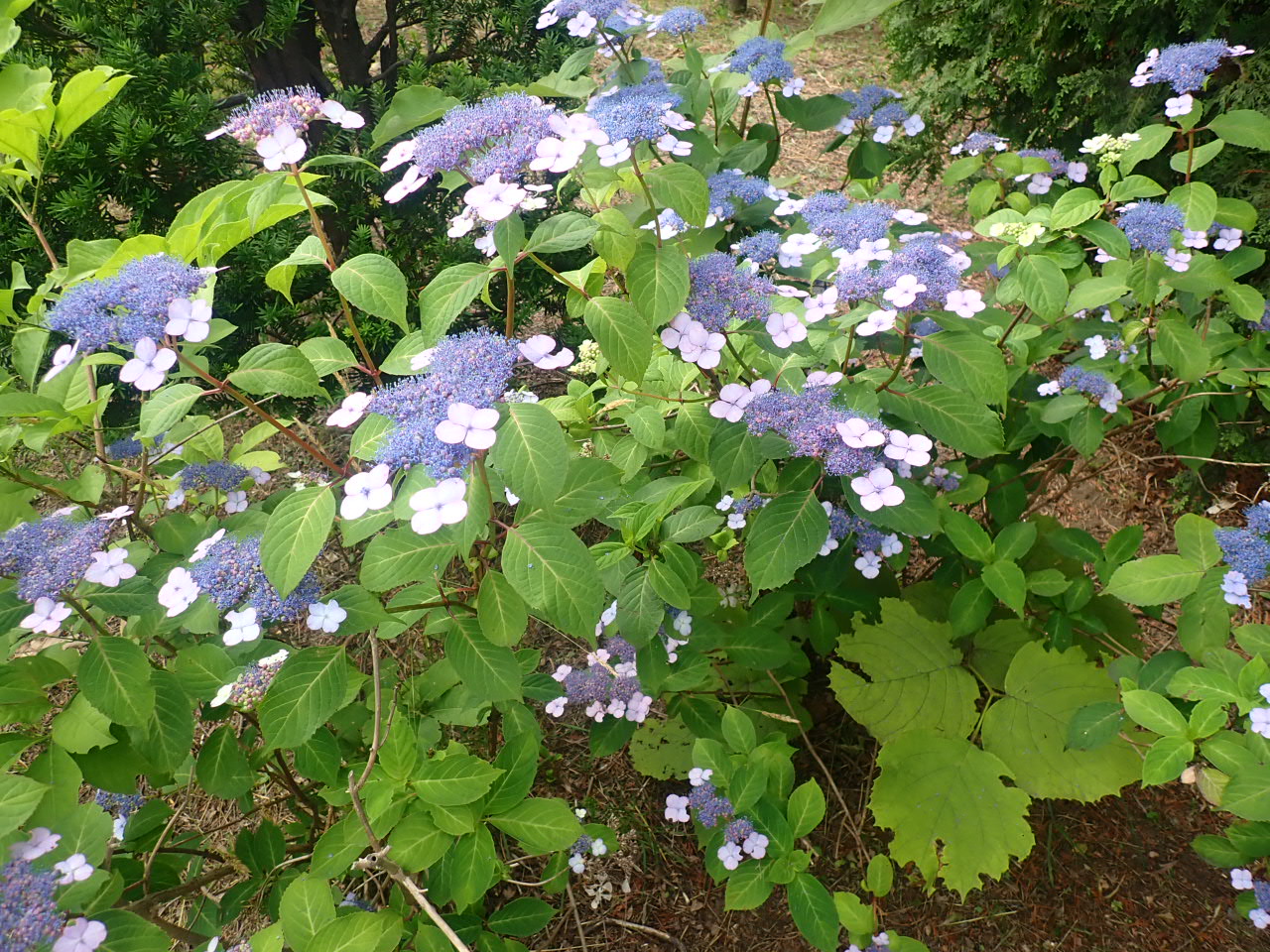 園内では、ヤマアジサイの変種のアマチャやアジサイが咲いています。