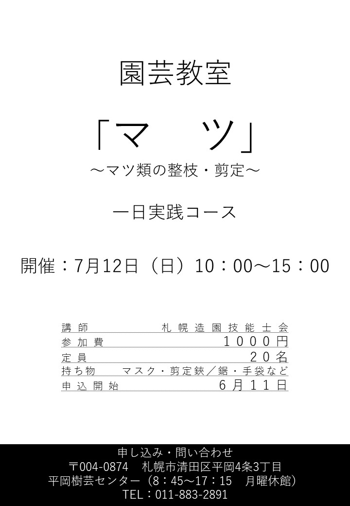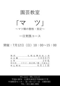 さて、7月12日には、皆さんが最も気になる「マツ類の剪定方法」について園芸教室を開催します。