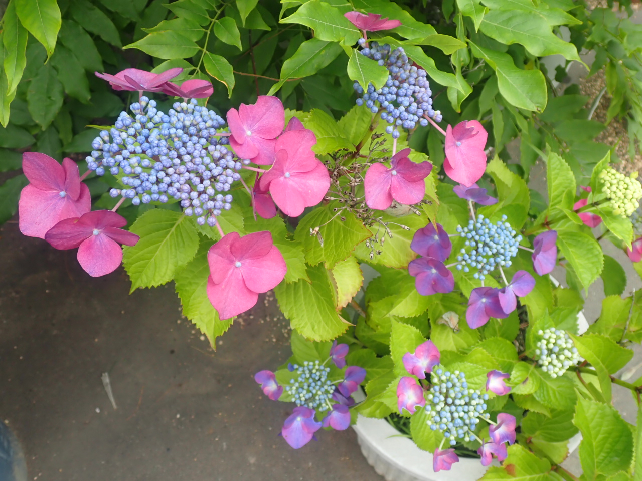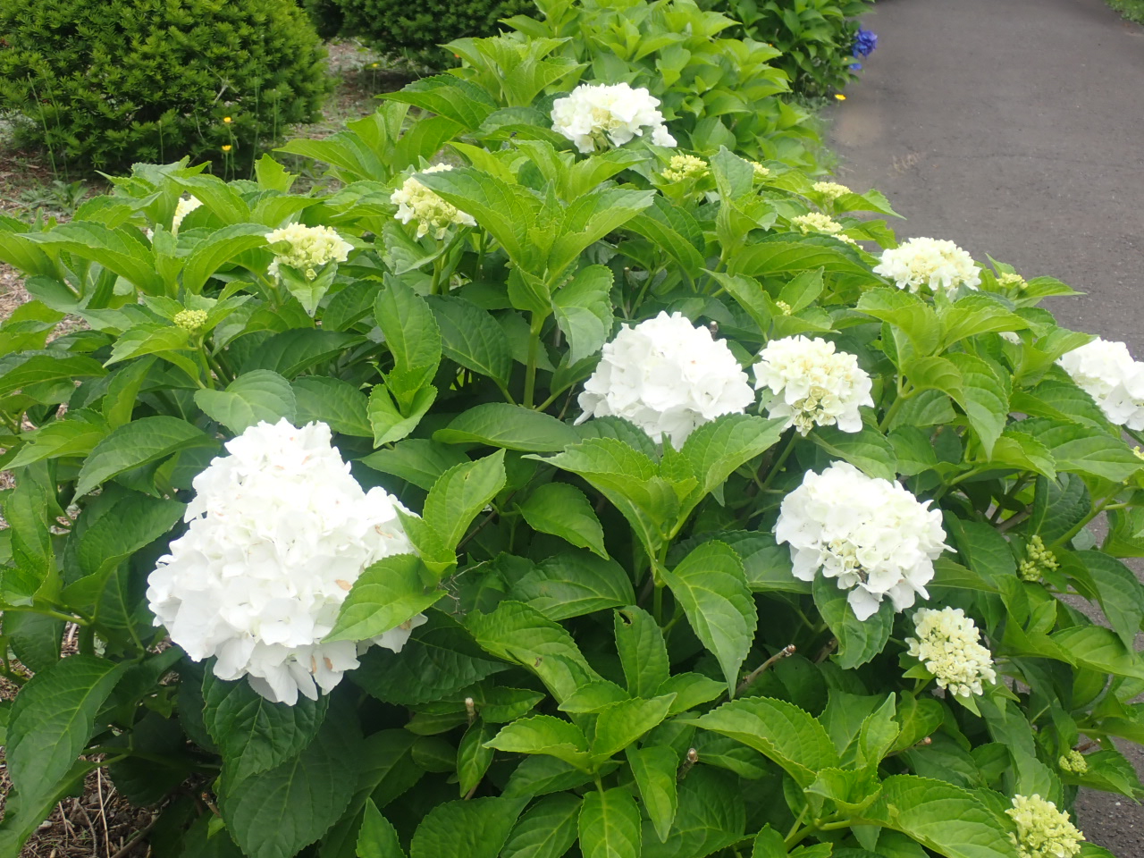 園内では、アジサイが色とりどりに楽しませてくれます。