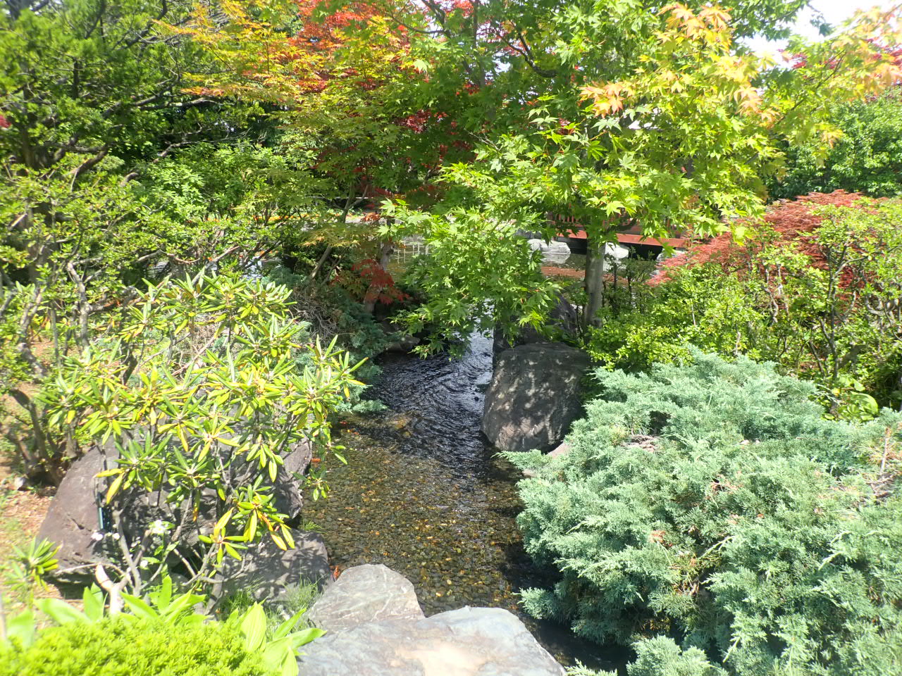 日本庭園の川の流れる音で、涼んでみてはいかがでしょうか。