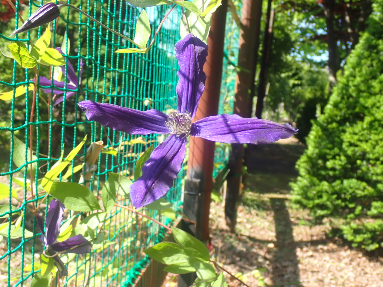 クレマチスも白い花や紫の花など色とりどりに咲いています。