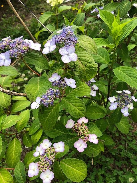 園内では、ヤマアジサイの変種のアマチャやスモークツリーが咲いています。