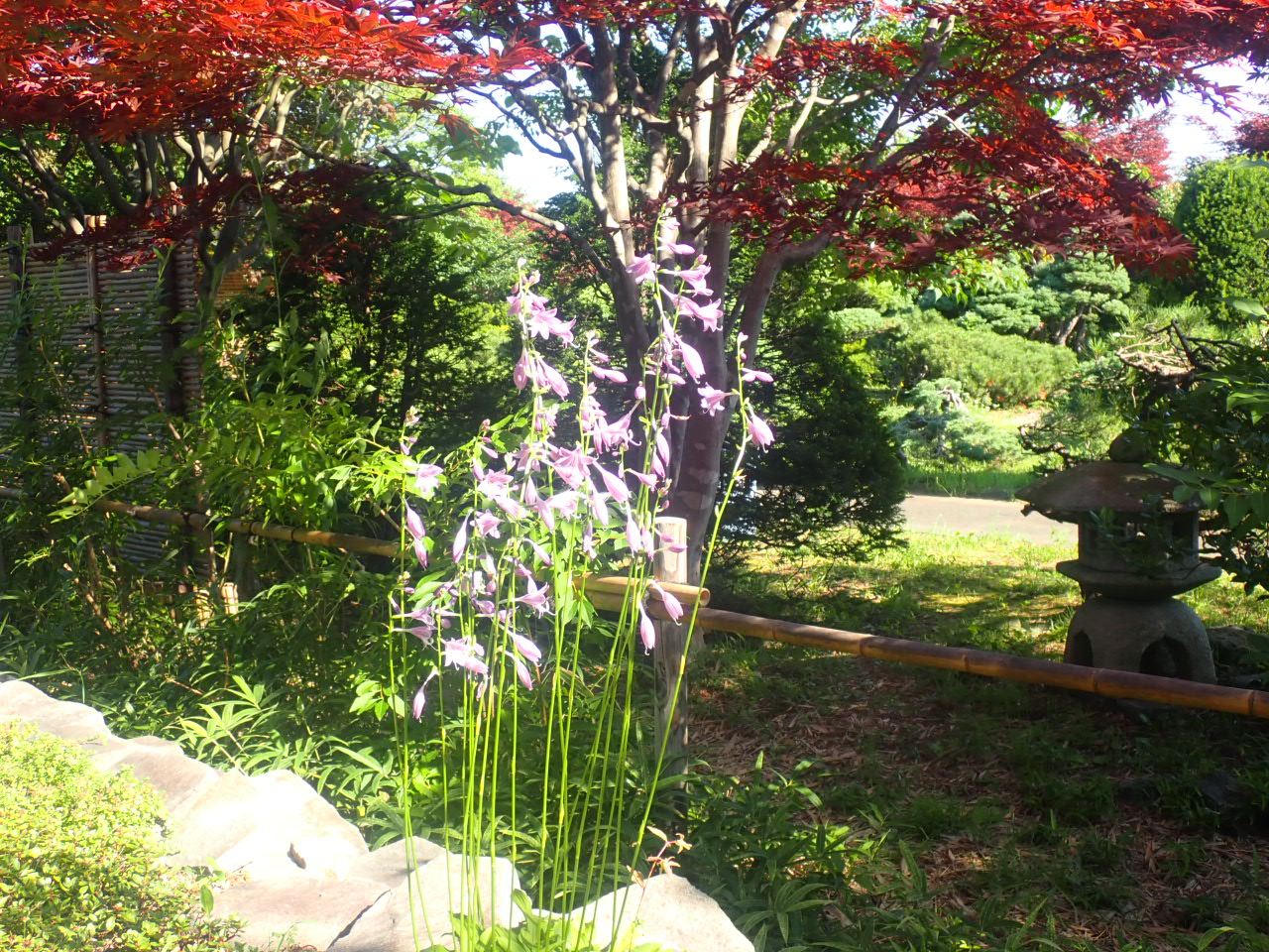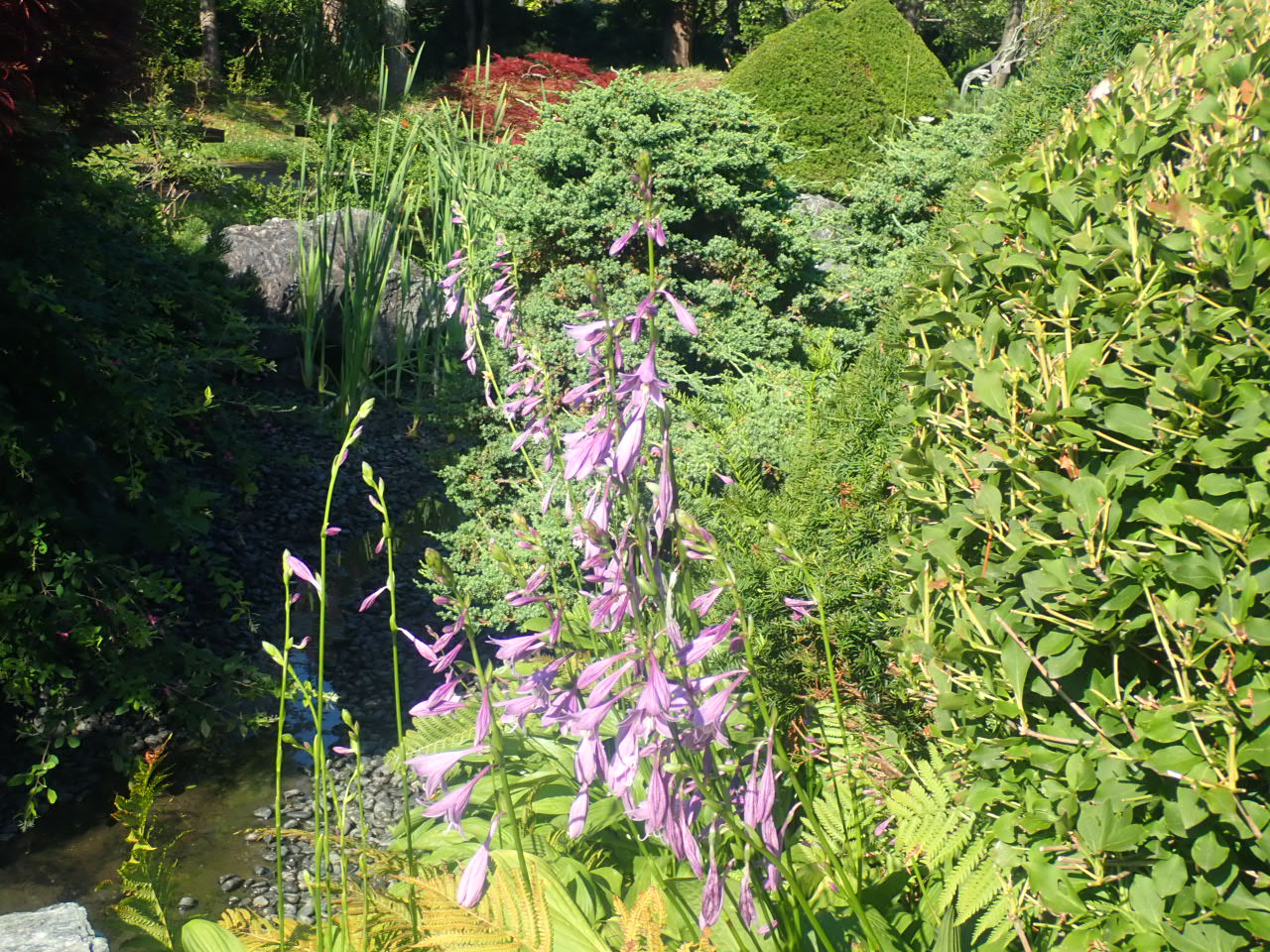 日本庭園やウォールガーデンでギボウシが咲き始めました。