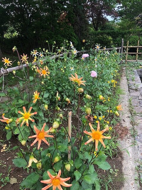 オレンジやピンクのダリア