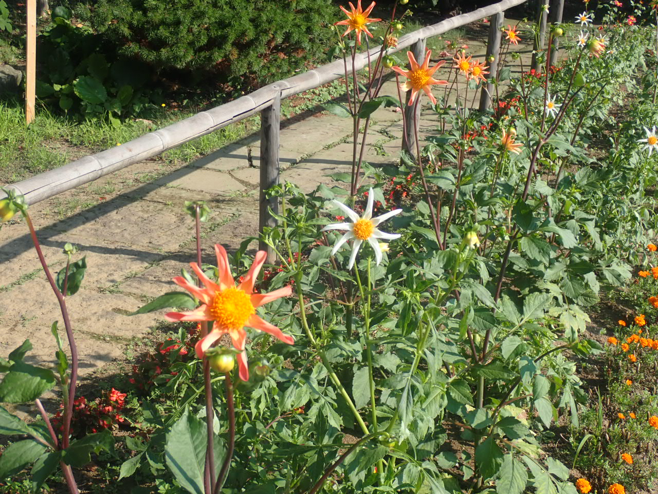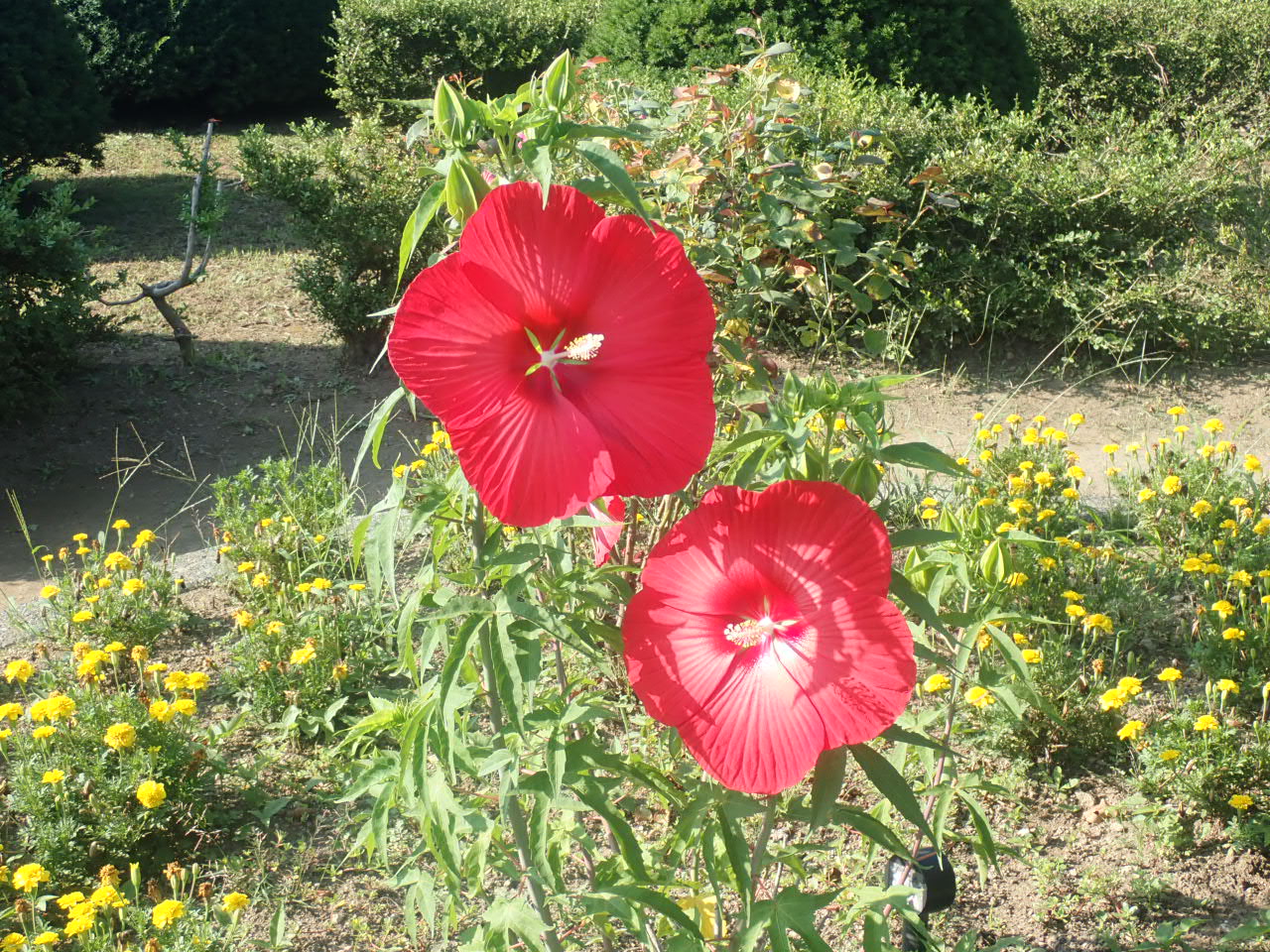 園内では、西洋庭園でタイタンビカスが咲いています。