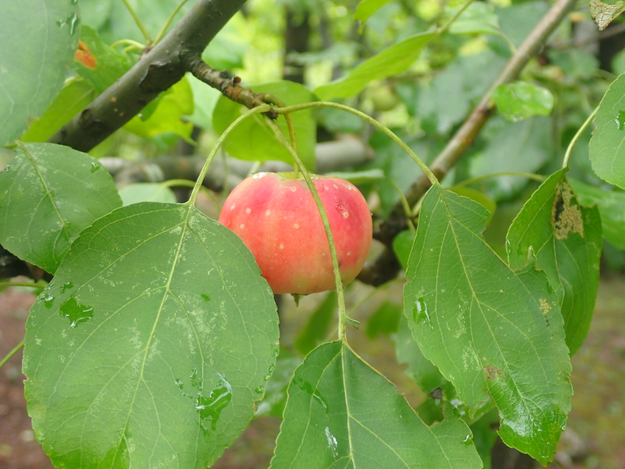 リンゴの小さな実が生っています。