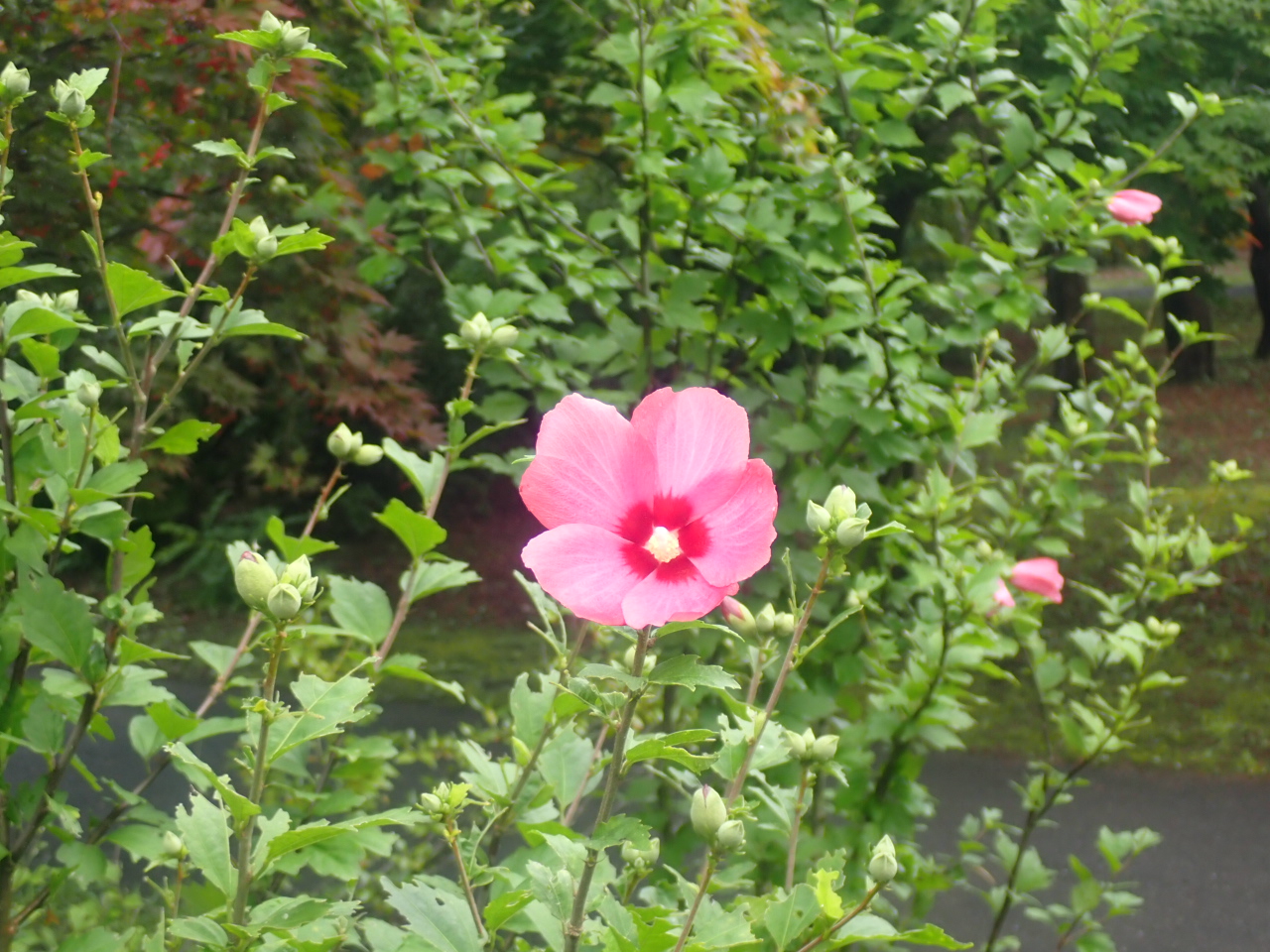 園内では、ムクゲが咲いています。