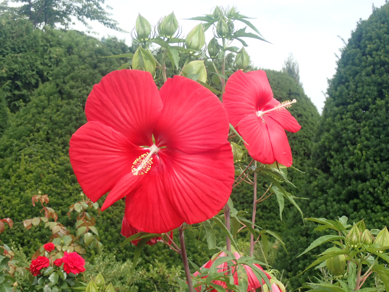 西洋庭園では、タイタンビカスが咲いています。