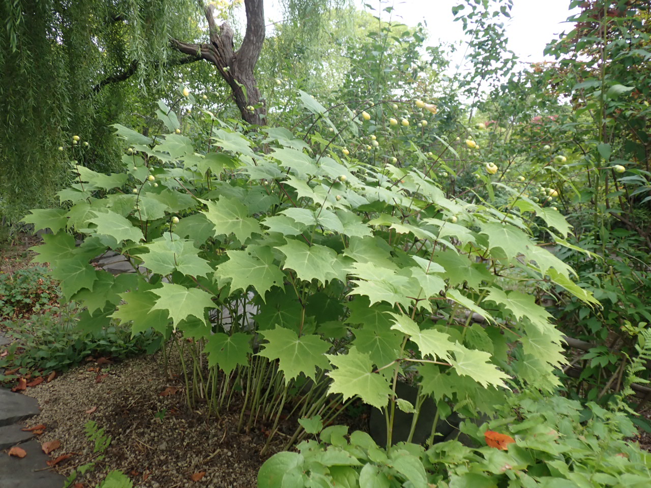 園内のウォールガーデンで山野草のキレンゲショウマが見頃を迎えています。