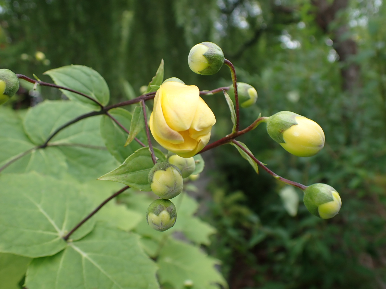 少し下向きに黄色い花を付け、完全には開きません。
