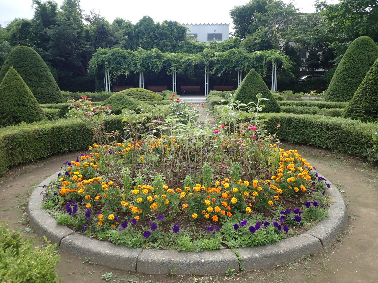 園内奥の西洋庭園ではバラや一年草などが咲いています。