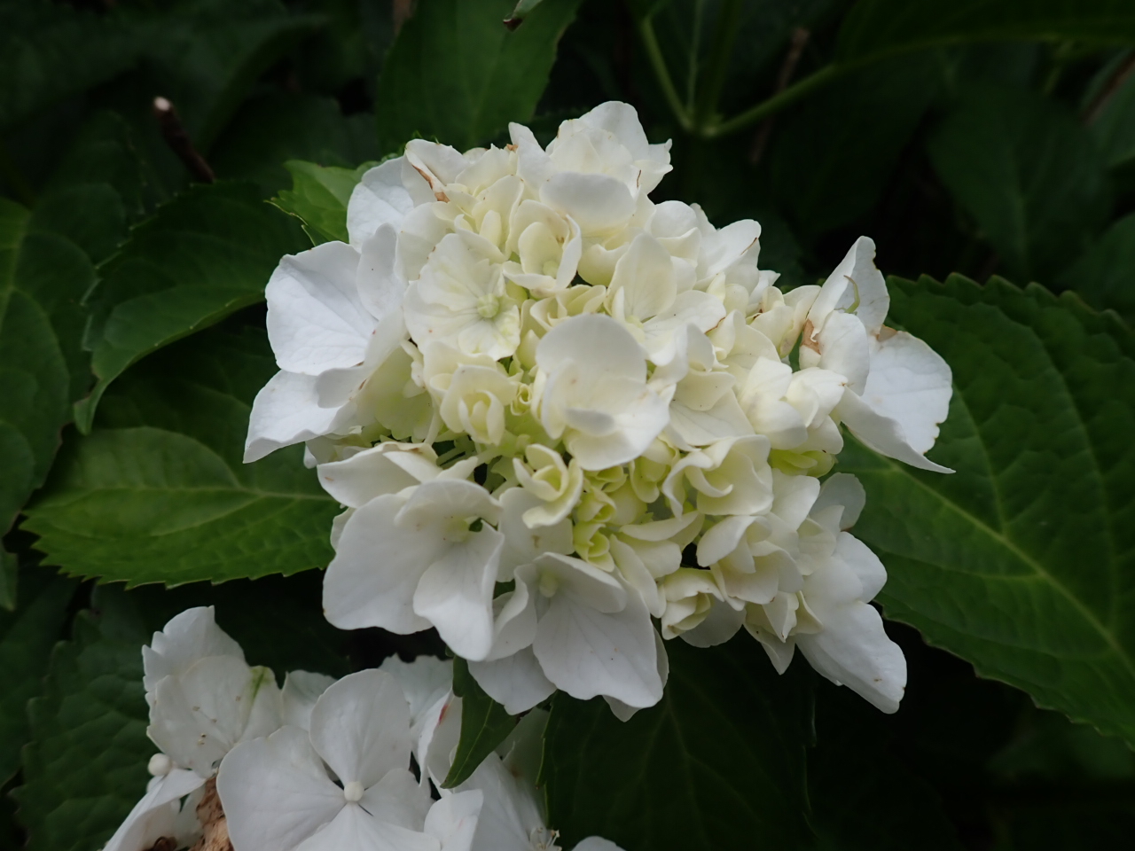 ノリウツギではまばらに付いていた装飾花がすべての花に付きます。