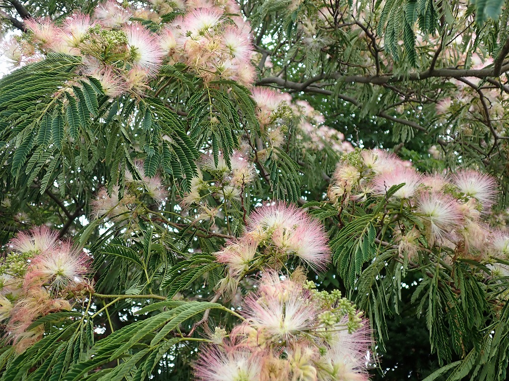 4枚目のネムノキは、夕方に葉が閉じて眠っている姿です。