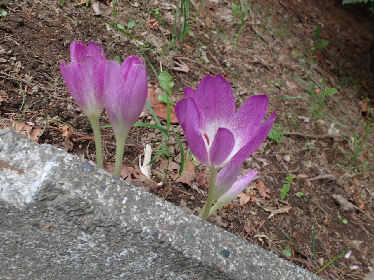 園内の通路脇各所でコルチカムが開花しています。