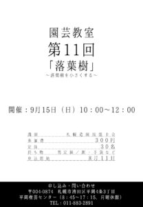 夏は常緑樹の剪定講習を開催しましたが、秋以降は落葉樹の剪定について学びましょう。