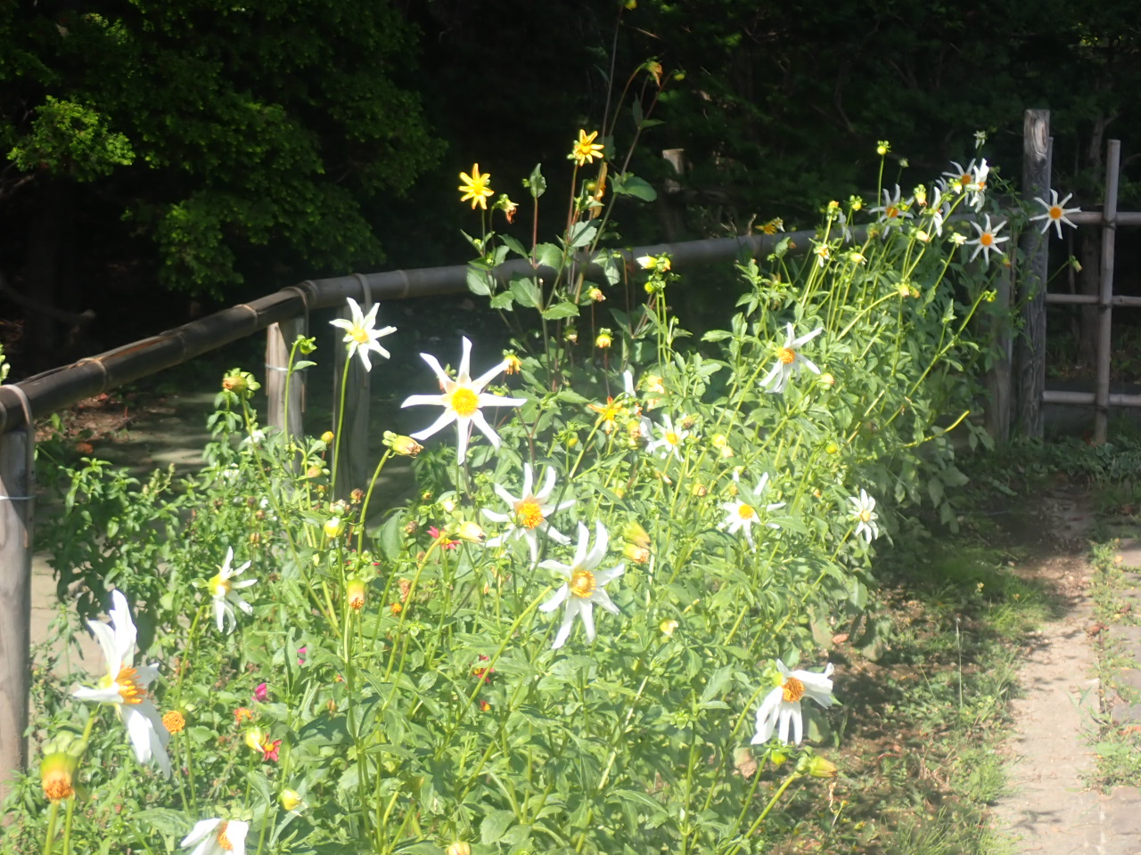 日本庭園では、ダリアやミヤギノハギが咲いています。
