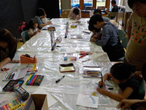 キーホルダー作りは、プラ板に好きな絵を描いて自分だけのキーホルダーを作る講座。