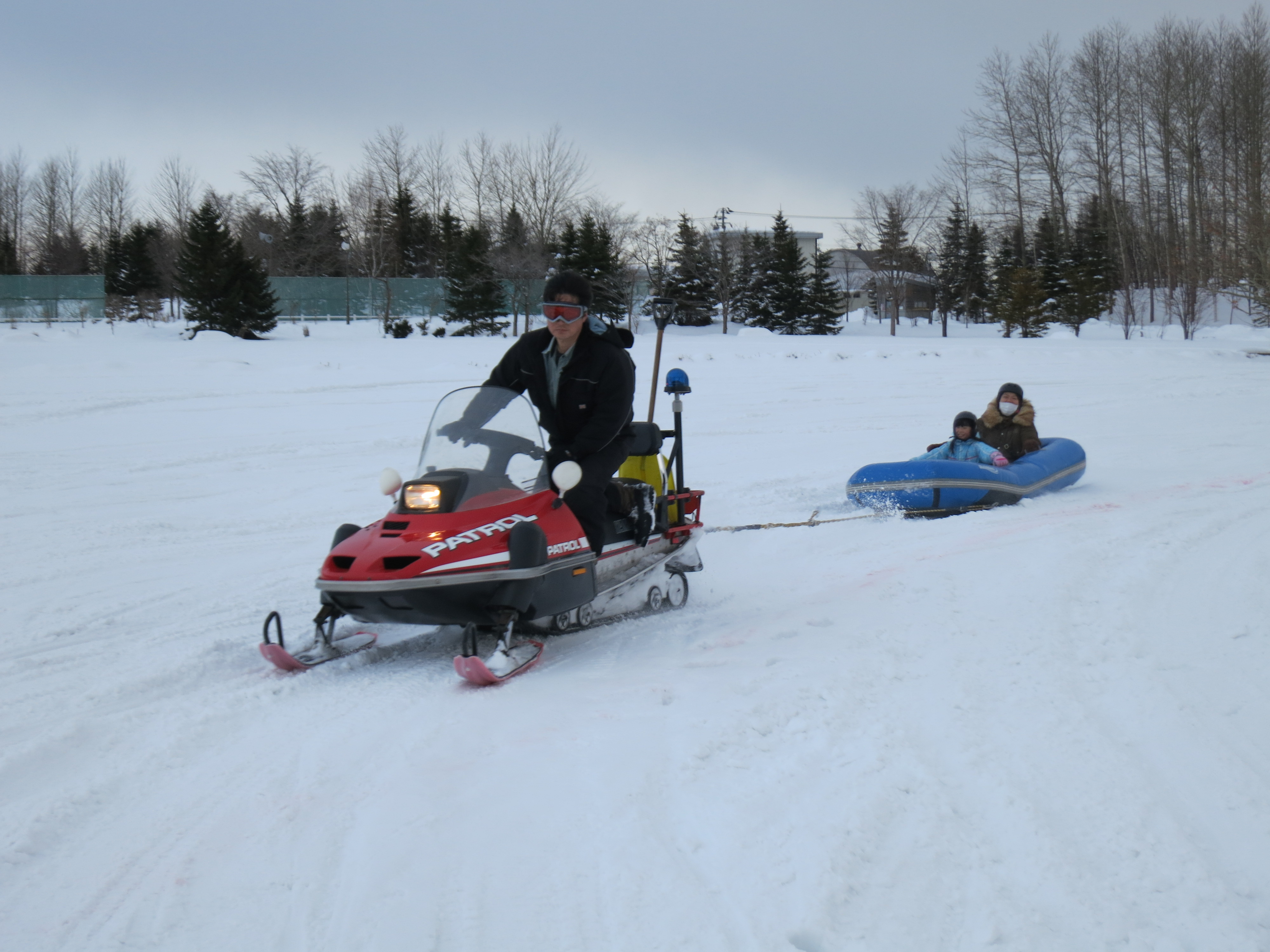 今日一番人気があったのは、やっぱり雪上ラフティングボートです。