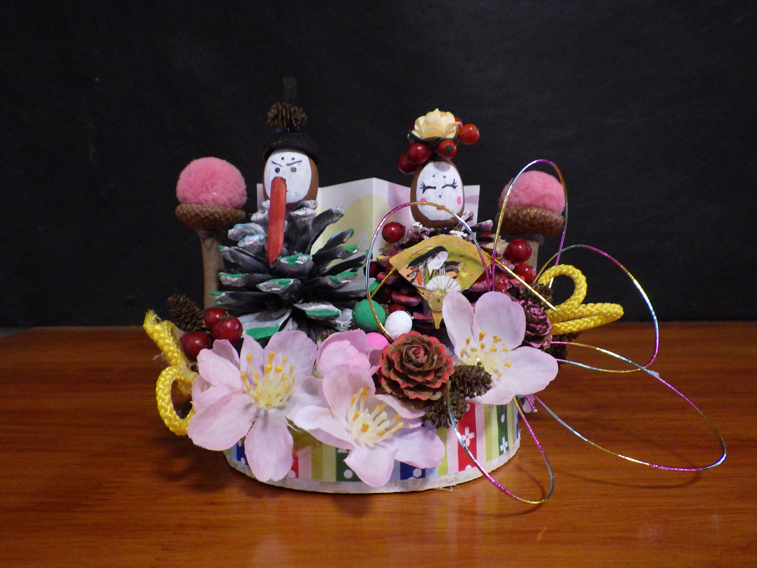 12月にもあったクラフト講座ですが、今回はひなまつりに向け、木の実で作った雛人形を作りたいと思います。