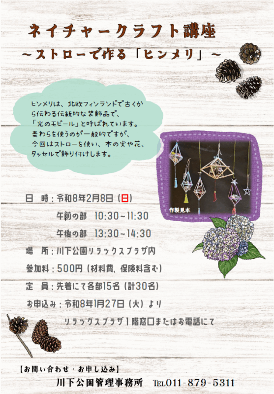 2月のネイチャークラフト講座は、“ストローで作る「ヒンメリ」”