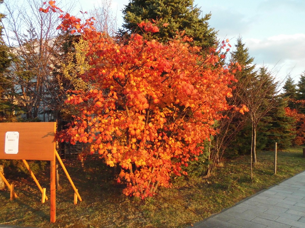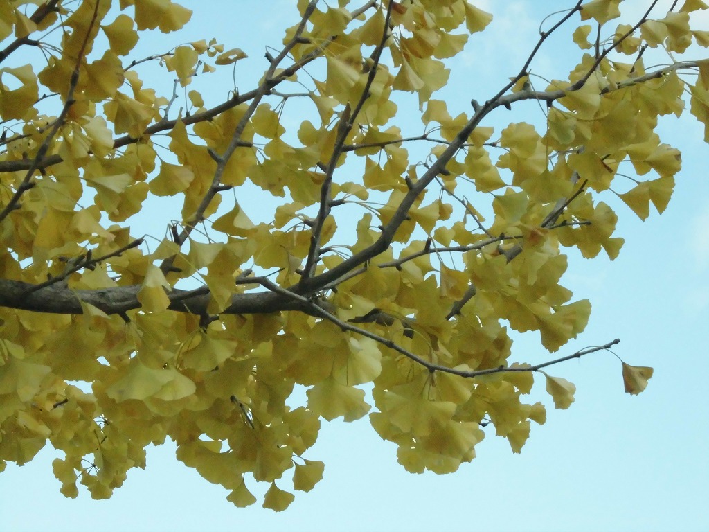 イチョウもこの寒さで黄色く紅葉し、赤く染まったカエデやまつぼっくりなどが秋を感じさせてくれます。