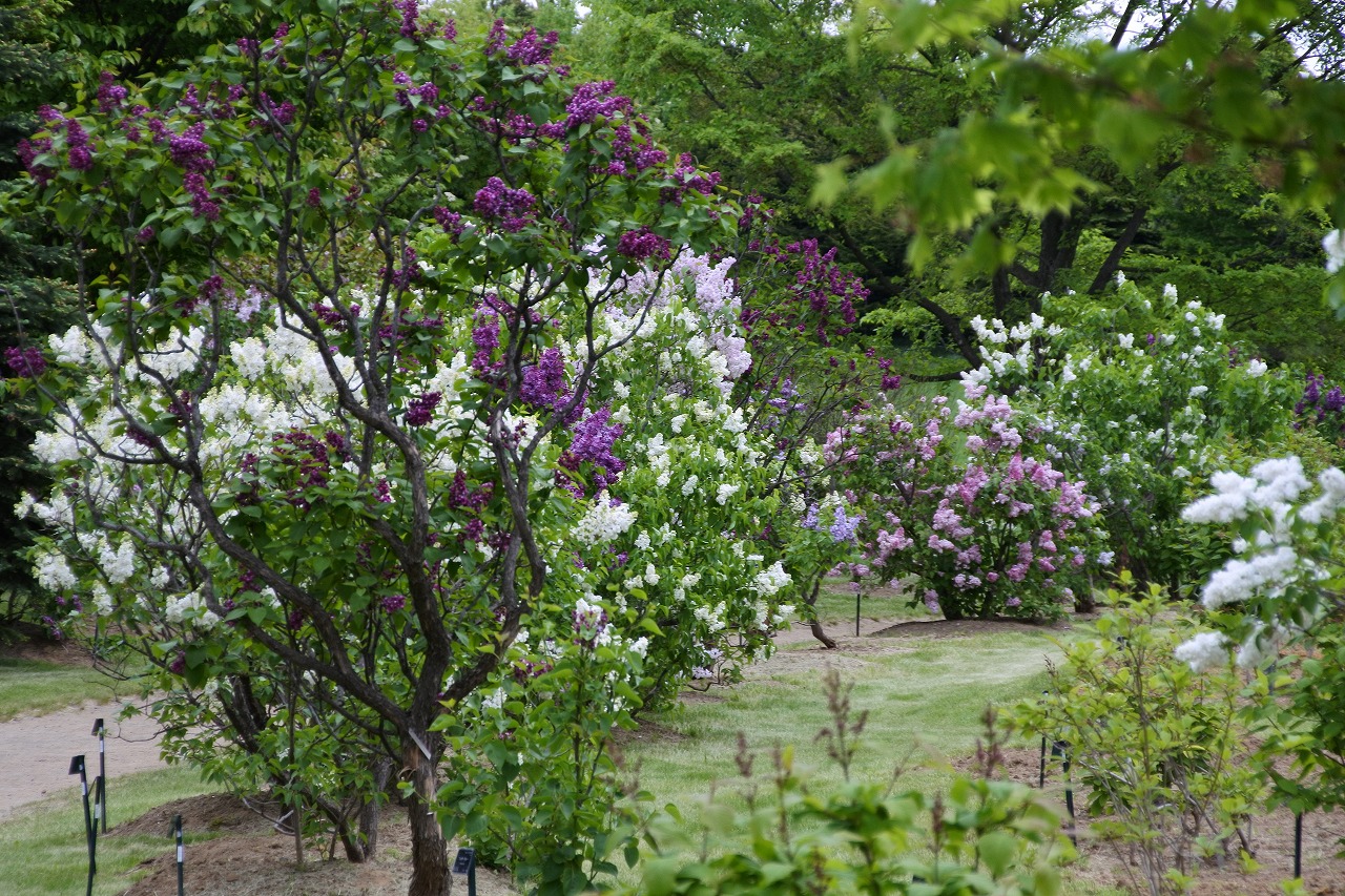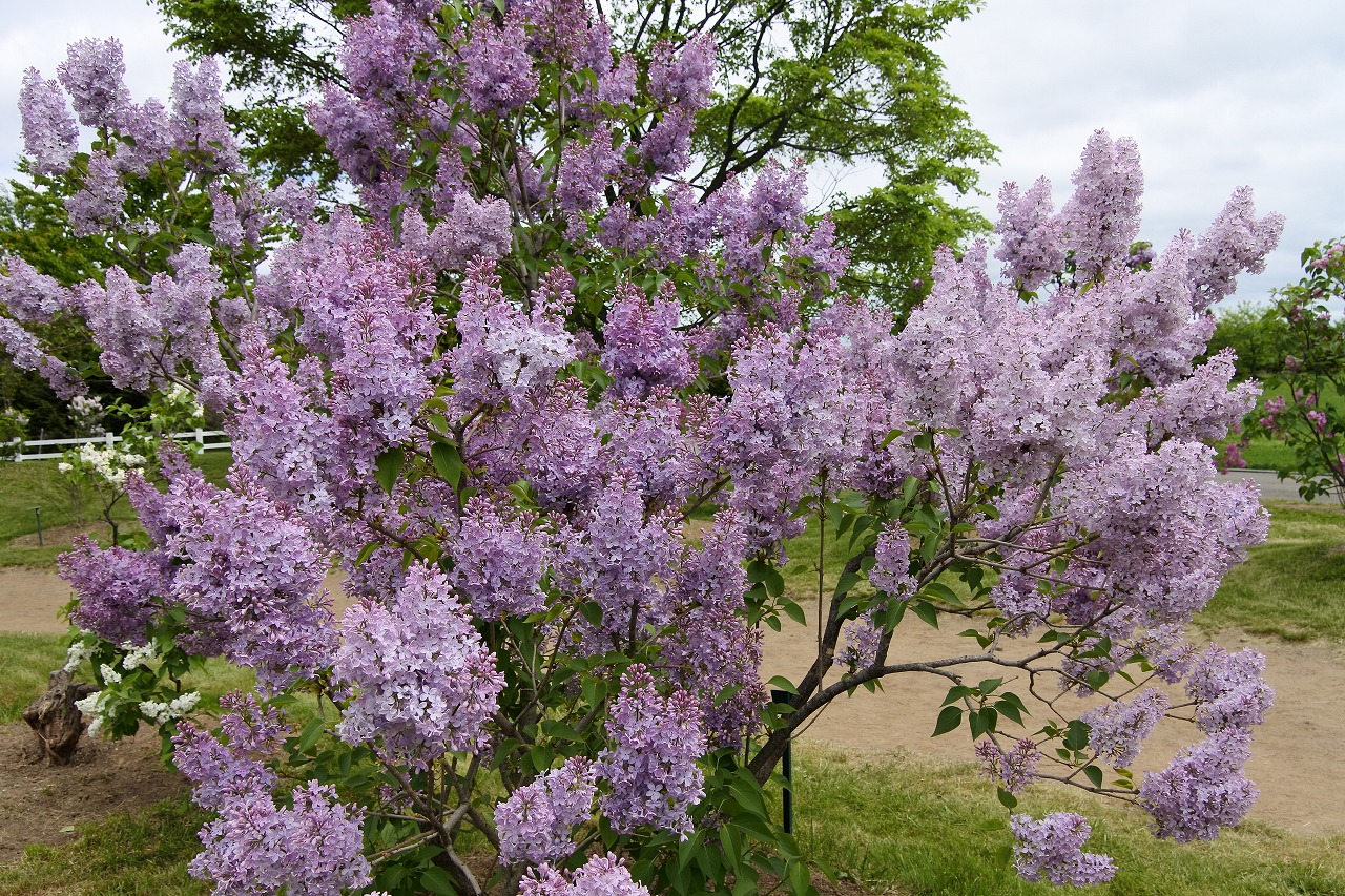 そして、今年の特徴としては、本来開花の時期が終わっている早先ライラックと今が見ごろの中咲き品種のライラックが同時に見ることができます!!