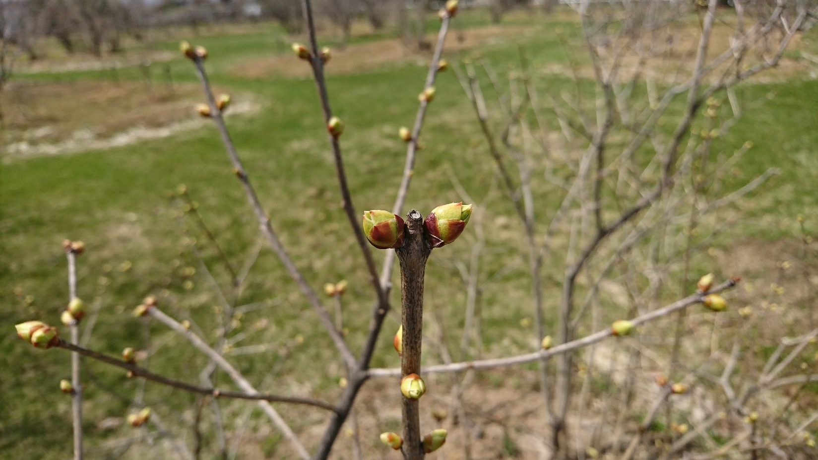 本来この時期に芽鱗が動いていることは見かけないのですが、今年はどのライラックの芽もプックリと膨らんでいます。