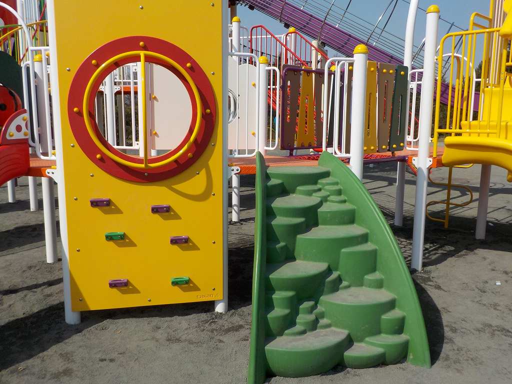一番低いところは、先程の赤いすべり台と同じくらいの傾斜ですが、一番高いところはもしかすると小さな子はちょっと怖いかな?
