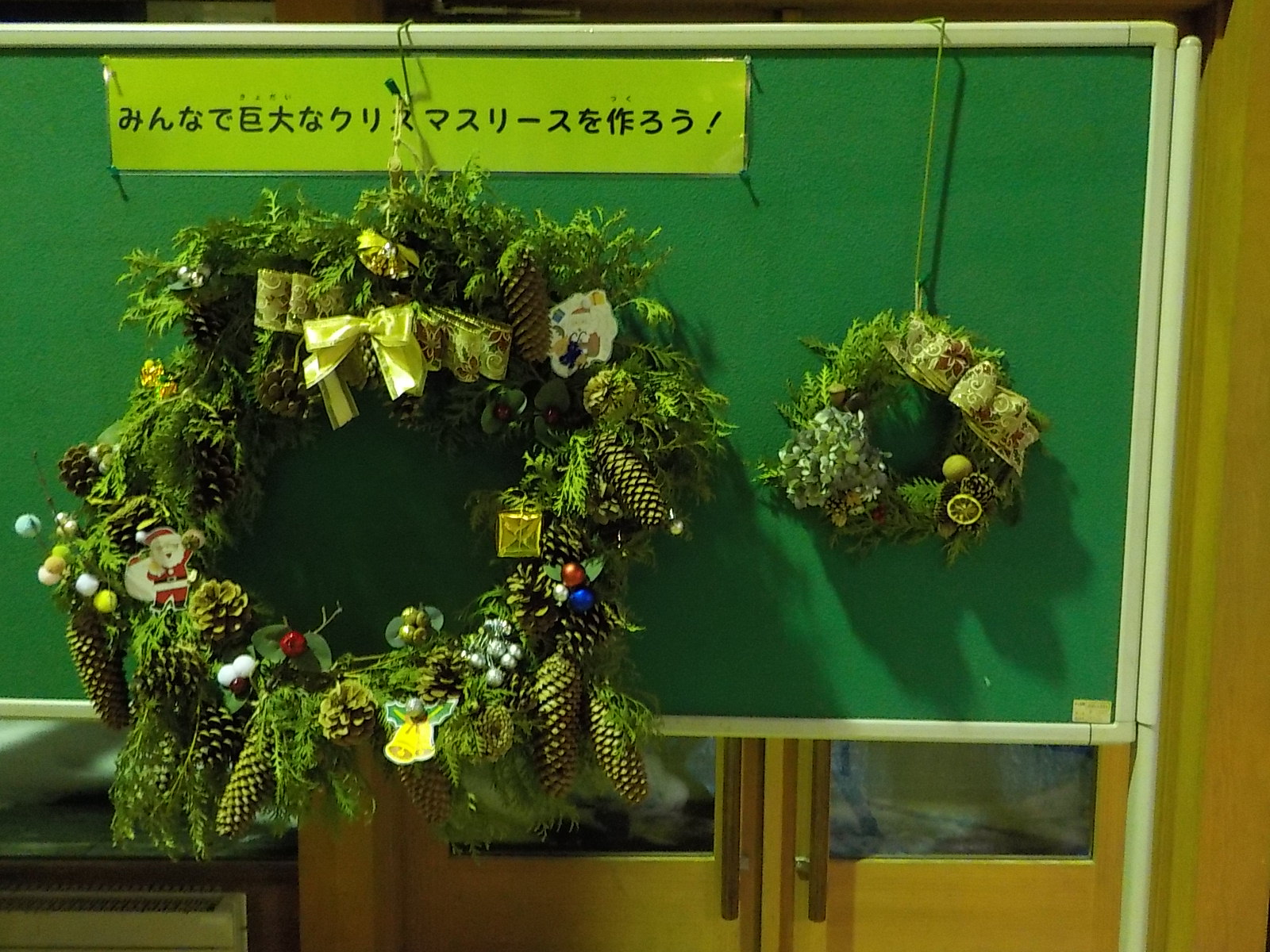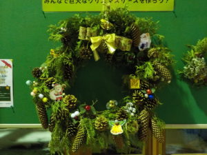 実はこの巨大リースの飾り付けは、リラックスプラザにいらっしゃったお客様に手伝ってもらいました!