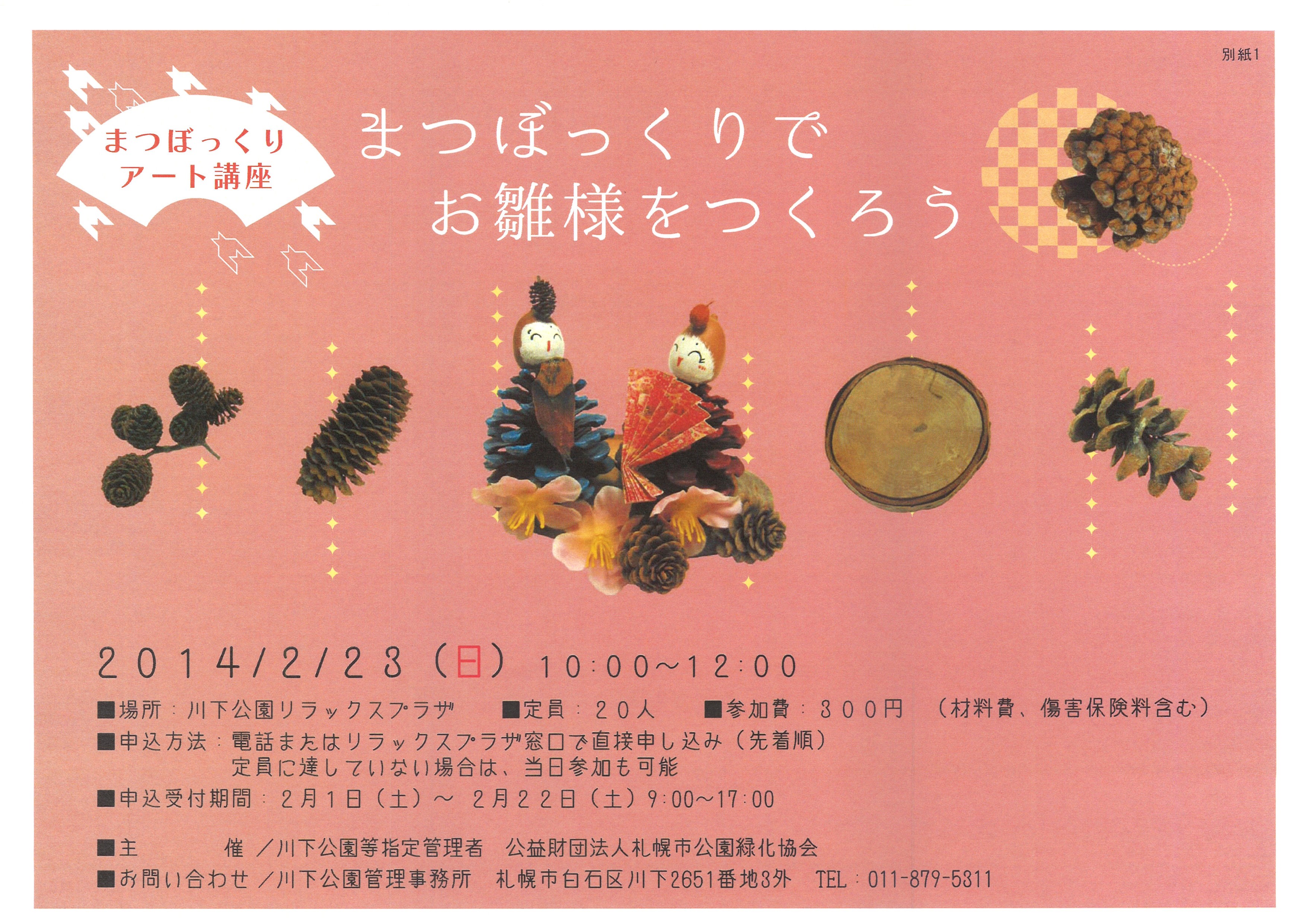 2月23日(日)10:00より、まつぼっくりアート講座「おひな様をつくろう!」を開催します。