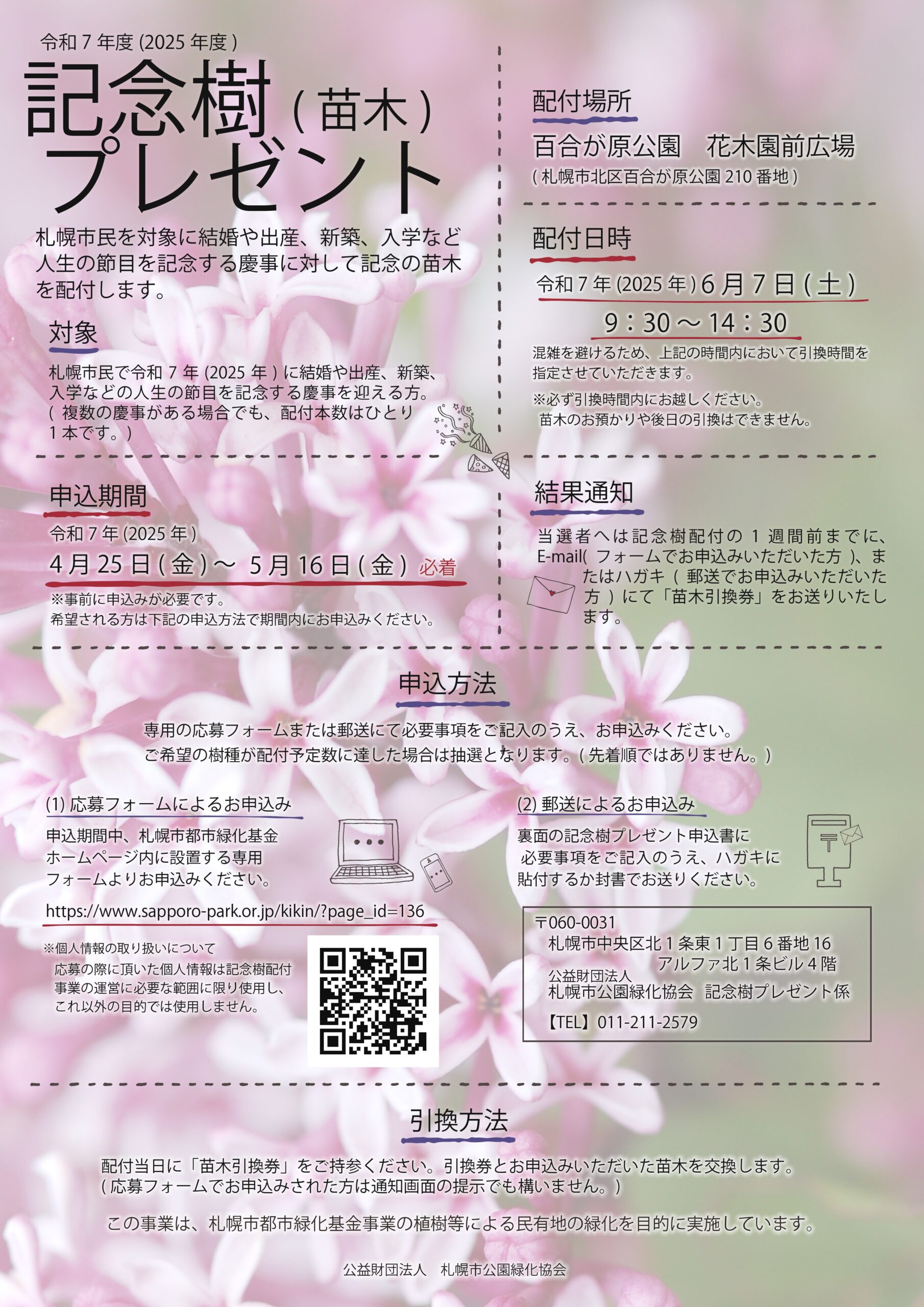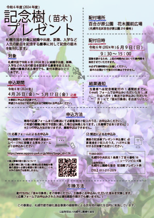 公益財団法人札幌市公園緑化協会 記念樹プレゼント係