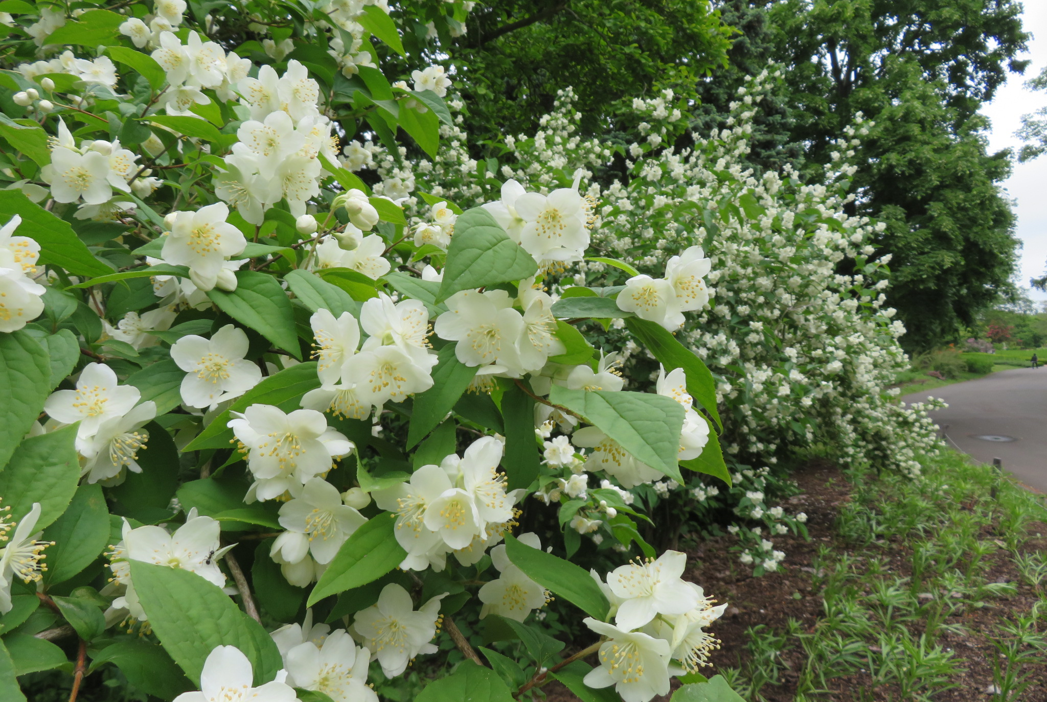 バイカウツギは、初夏に枝先に白いさわやかな花を咲かせる高さ約2mの落葉低木です。古くから公園樹や庭木として利用され、名前はウメに似た花を咲かせることに由来します。
