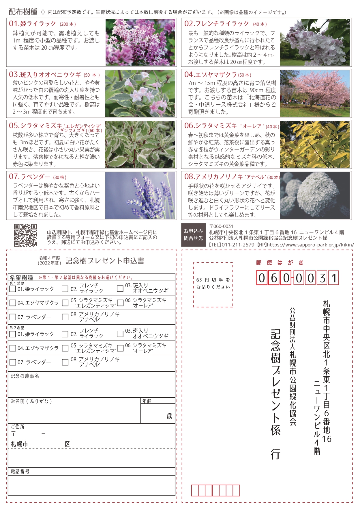 公益財団法人札幌市公園緑化協会 記念樹プレゼント係