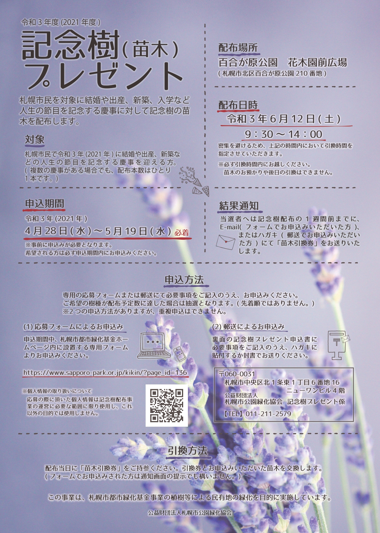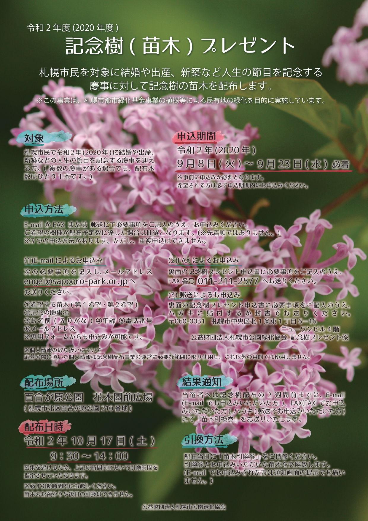 公益財団法人札幌市公園緑化協会 記念樹プレゼント係