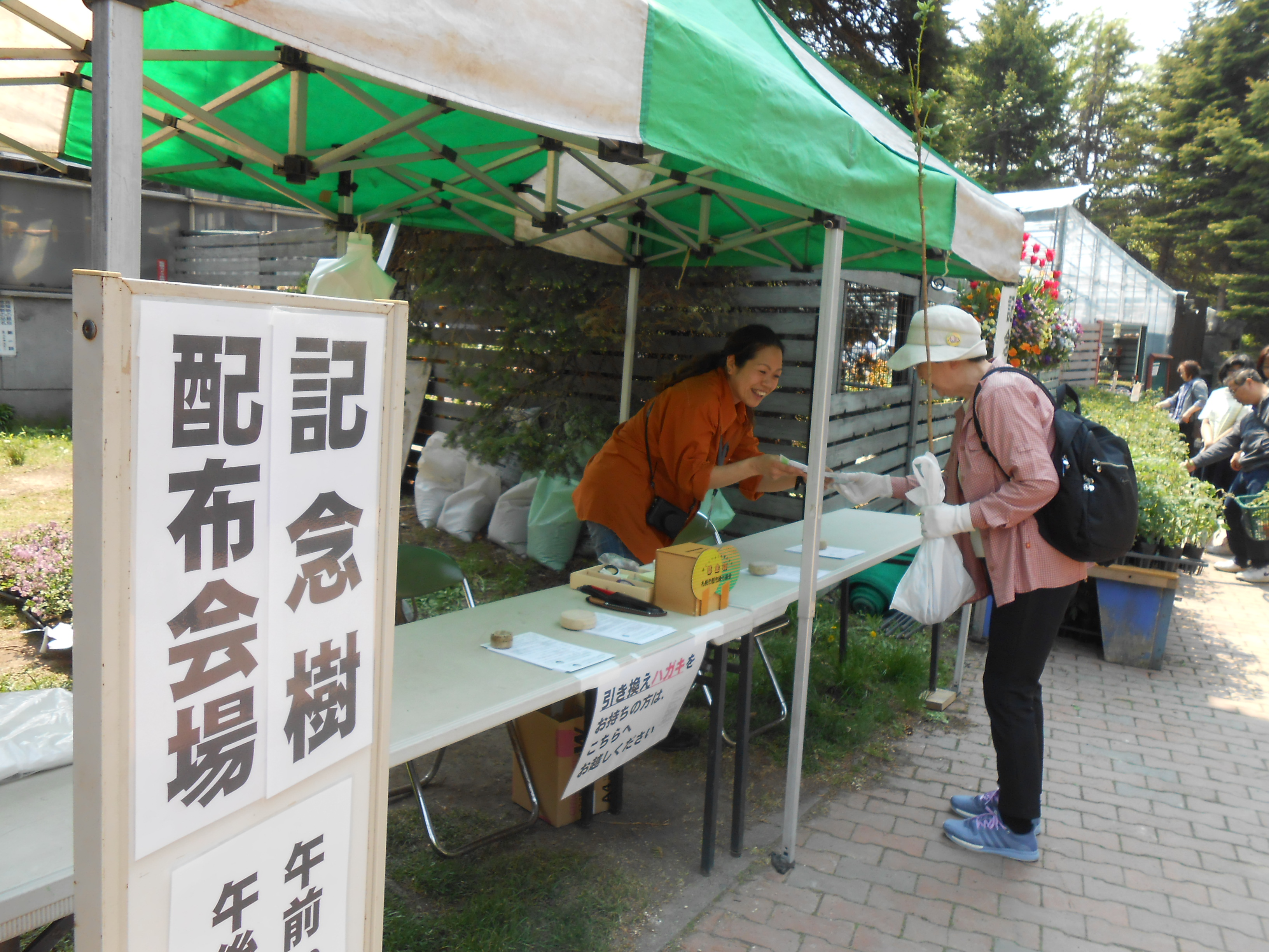 5月とは思えないくらい暑かった5月21日(土)、22日(日)の二日間、百合が原公園にて記念樹プレゼントの引き換えをおこないました。